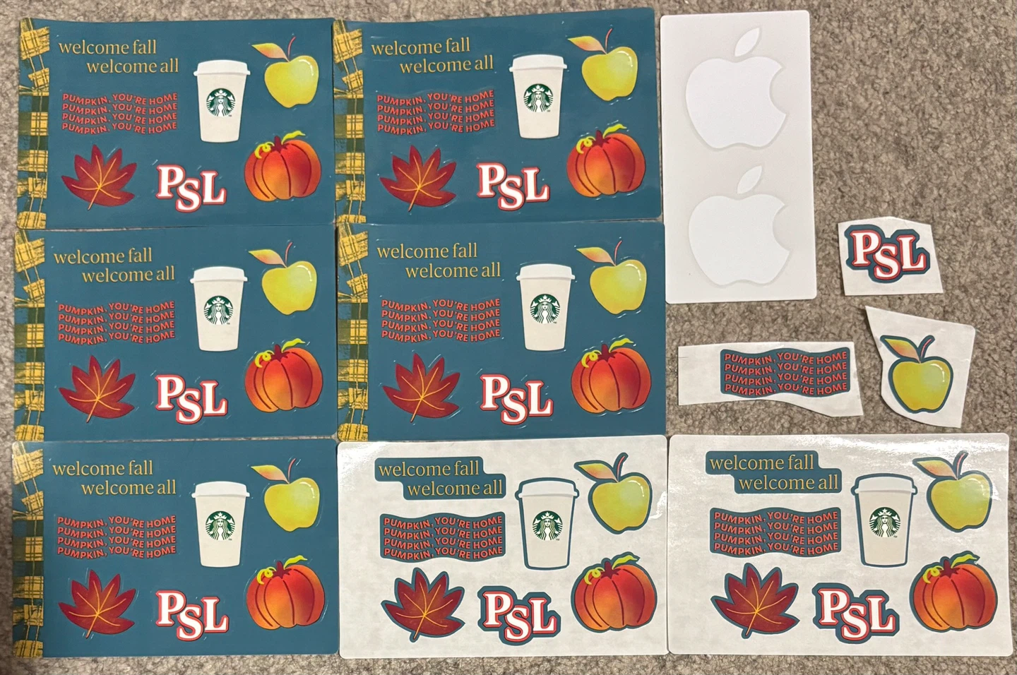 Cute fall-themed stickers up for grabs! Includes Starbucks cups, apples, pumpkins and 'PSL' designs. Perfect for decorating laptops, water bottles, or scrapbooking. Add a touch of autumn to your everyday items, all as is. FREE STICKERS, TATTOOS & GIFT CARDS