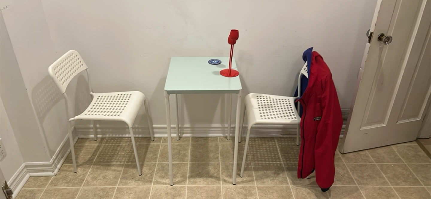 Ikea Fejan table and 2 ADDE chairs sold as a set, I’ve had the set for about a year, selling because no longer have the space for it. Jacket not included