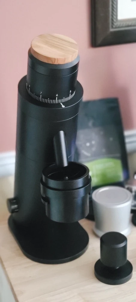 15Selling my favorite grinder :O The Original End Game flat burr low retention variable RPM single dose high end espresso grinder! The Option-O Lagom P64! Brushless DC Motor is super quiet and powerful. Currently sold out, Sells for $2495 + tax (over $2800) new with the SSP Burrs ($250+ value) and without the nice custom wood cap ($80+ value). Update now has the choice of two different wood caps! This is the older version which has tool-less access to the burrs. The minimum RPM range I believe is lower on this one, 200RPM at the lowest setting instead of 300rpm on the newer ones, max RPM remains the same at 1400RPM. With the newer version I'm not sure the build quality is as great on it, or at least they had some issues with the declumper coming loose and falling out on the newer model, haven't had any issues with mine. SSP MP Burrs are seasoned and in great shape. Great for pourover or espresso, optimal for high quality light roast coffees. I found RPM does make a difference with these burrs, some burrs it seems to make less of an impact. Higher RPM = Less flavour clarity, lower acidity, more sweetness and possibly more linger and body. Lower RPM = higher acidity (brighter), and more flavour clarity. Sharper notes. I've had the Zerno Z1 with the same SSP MP Burrs except blind. People were hyping it up saying the Auger / Prebreaker and blind burrs make such a dramatic difference and I was disappointed that it did not. So I think a lot of these new features are over-hyped. It makes sense technically but not something you 'need' to have. For me and my coffee friends, we couldn't really tell the difference, and whichever grinder was basically dialed in better made the better coffee. The Zerno was great too, but the P64 I felt was nicer due to the silent motor and versatility of adjustable RPM and having a portafilter fork. Should be cheaper than ordering a Zerno Z1 too after import Fee's. Includes original box and WDT tool (not the best) I can include an alternative one if you need! The Original Dosing cup (which I think might be better than their new one). And Original magnetic portafilter funnel which is great. Pictures are random older ones but I keep my gear in good shape, there's no scratches or issues. I keep silicone sleeves on the portafilter forks which give it a little more grip and padding / protection from scratches. Update: added new pictures. Also now comes with their updated magnetic Versa Cup which opens from the bottom! Lowered price! Checkout my other listings for more coffee gear and accessories. If you're new to coffee, I could give you some tips as well, I do coffee consultations. Thanks for viewing.