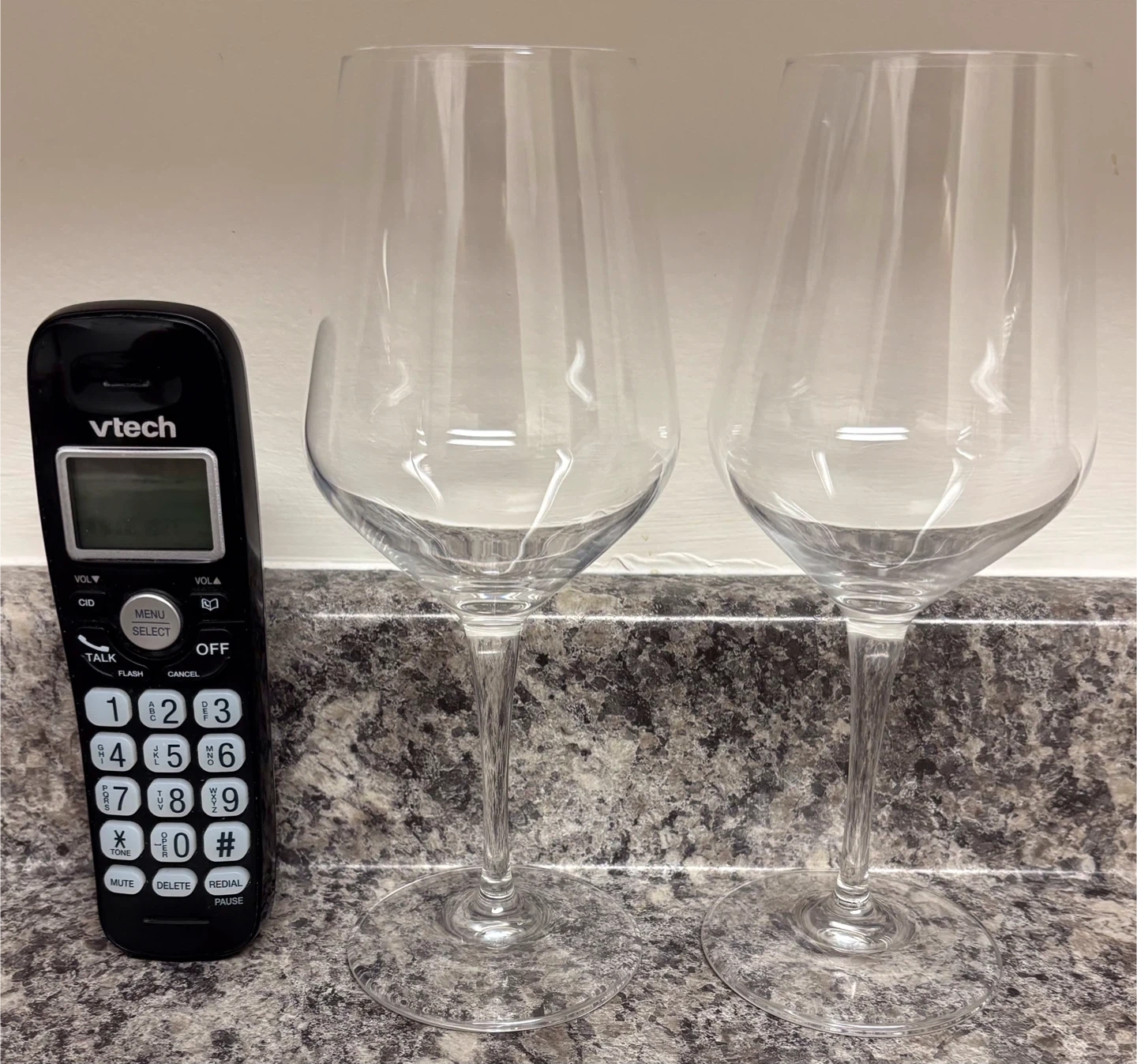 88Selling a set of two Bormioli Rocco wine glasses. They are in great condition and ready to be used for your next dinner party or cozy night in! The glasses have a classic design and are made from clear glass, making them a stylish addition to any table setting. Phone for size. Roughly 9 inches 18.5 oz More info in photo, both as is No box Available for pick up 11am to 5pm $20.00 exact cash only Tons of other listings, more items added daily, check them out