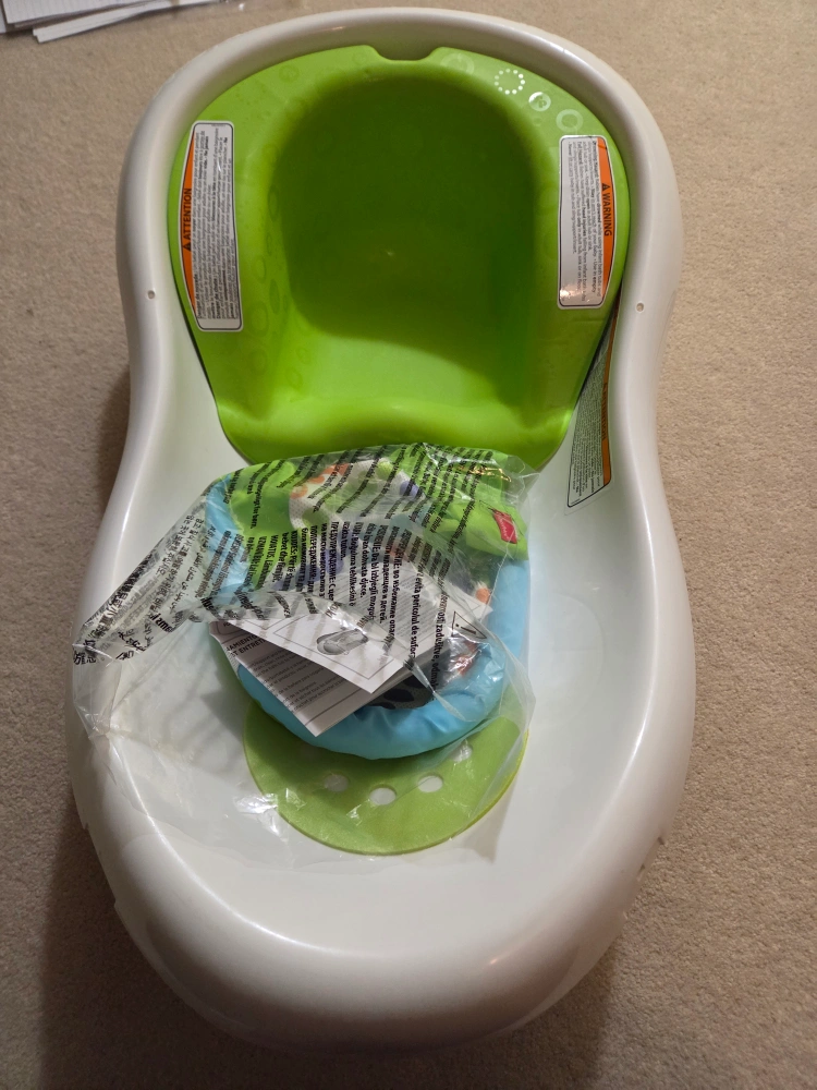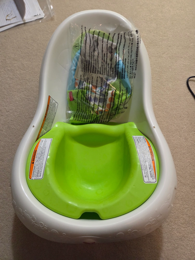 Selling gently used Summer Infant Newborn to Toddler Bath Tub! It's white with a green insert, perfect for your little one from newborn to toddler. Comes with a sling to support newborns and a comfortable recline for older babies. It's designed to make bath time safe and enjoyable for both you and your baby.