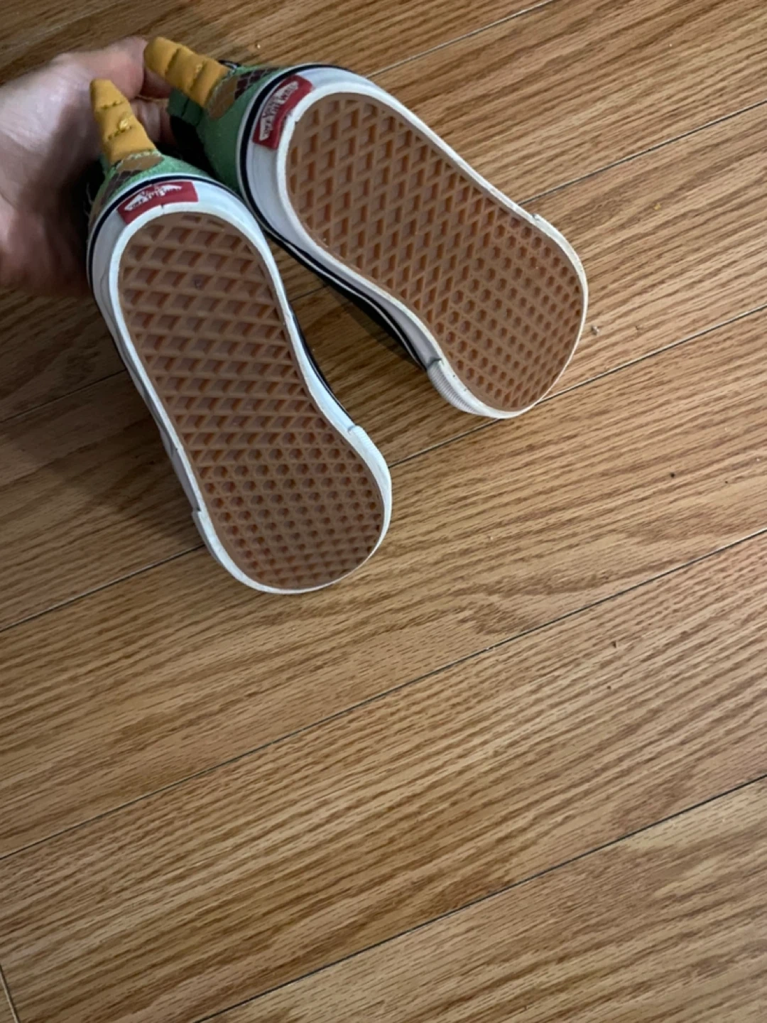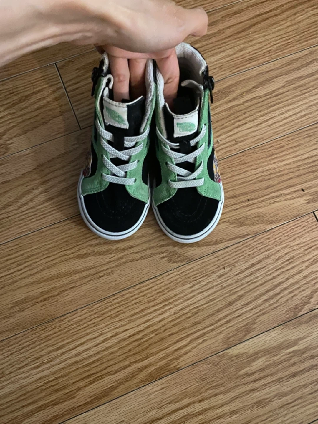 85These super cute Vans Sk8-Hi Zip shoes are perfect for your little one! They're in great condition and feature a fun dinosaur design. The size is US Toddler 6.