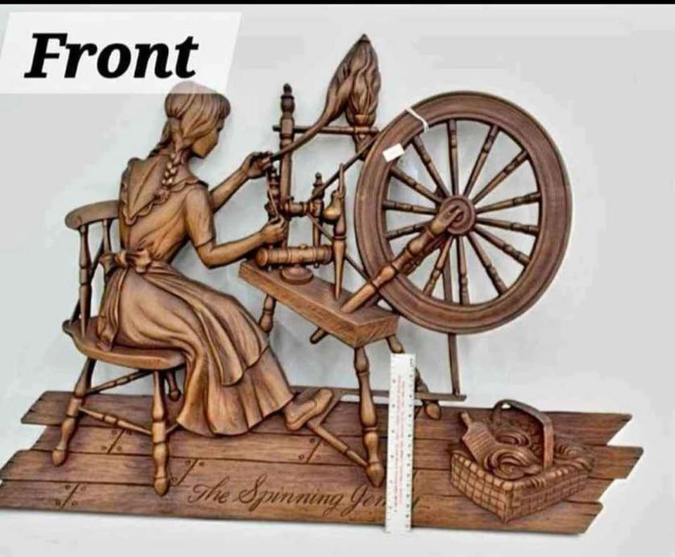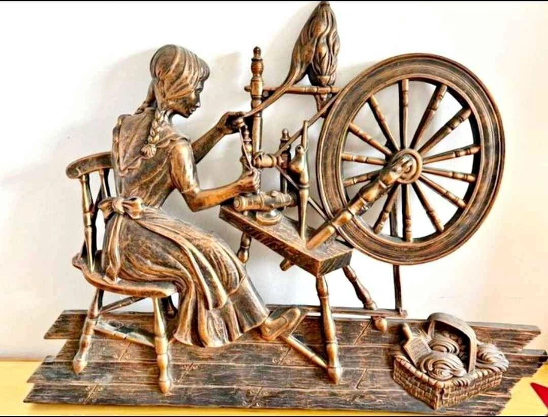 It Features a Young Lady Spinning Her Wool and is Finished in an Antique Copper Finish.
