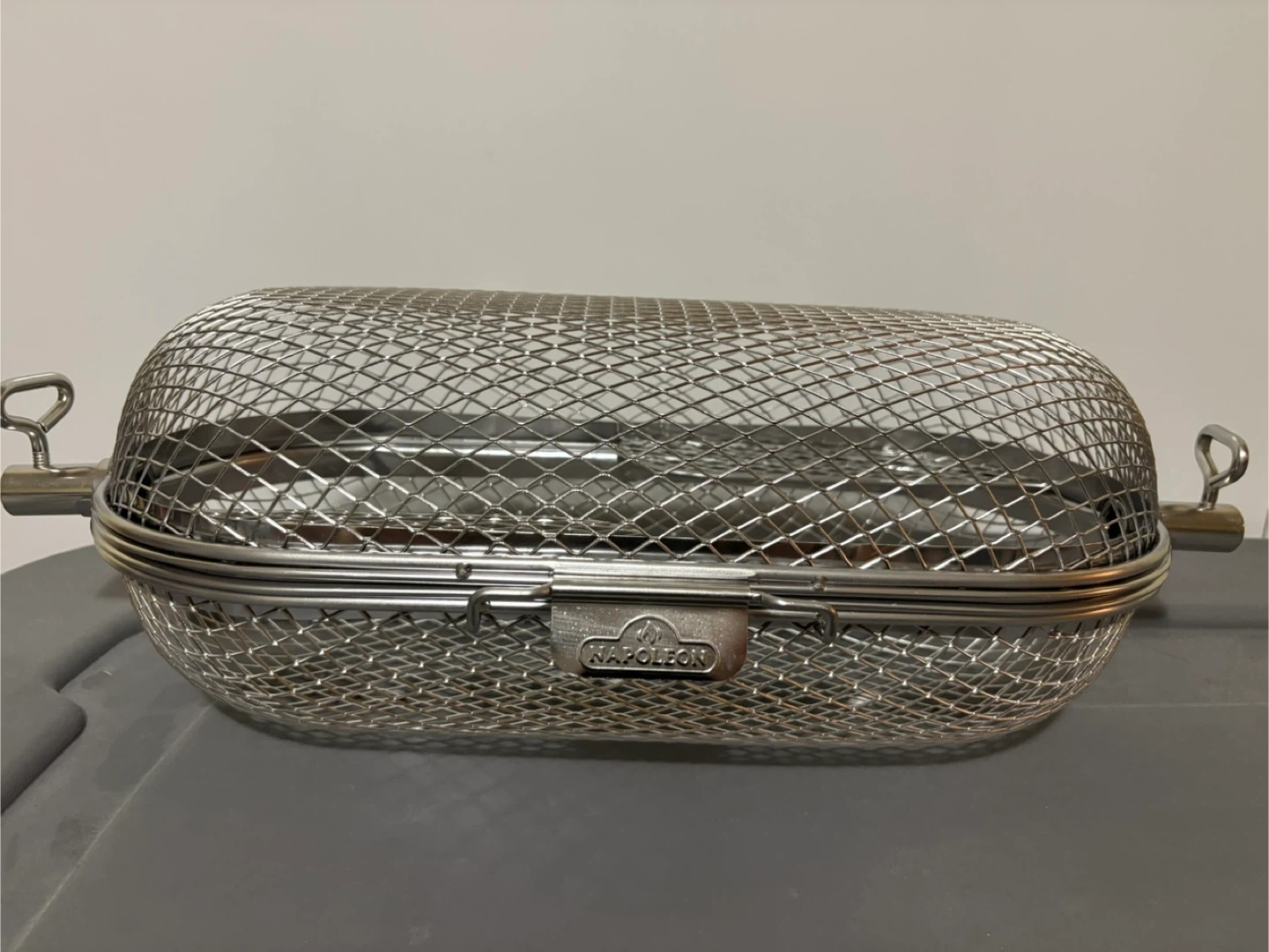 Get ready to elevate your BBQ game with this Napoleon Premium Stainless Steel BBQ Rotisserie Grill Basket! It's in great shape and ready for your next cookout. This basket is perfect for grilling up veggies or smaller cuts of meat with ease. It’s a fantastic addition to any BBQ setup!