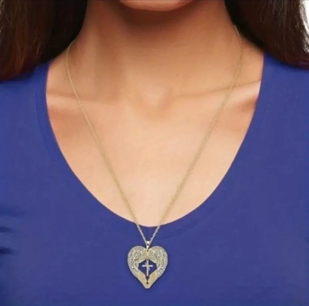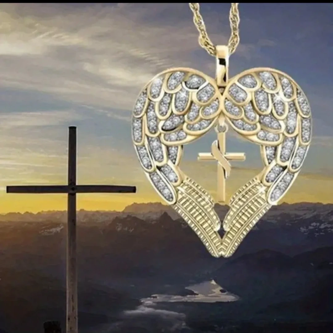 65Selling a lovely heart-shaped pendant necklace. It features wings and a cross design. The necklace is gold in colour and looks great! A lovely statement of loyalty and Faith This is a new item please Check out my other listings 🌹