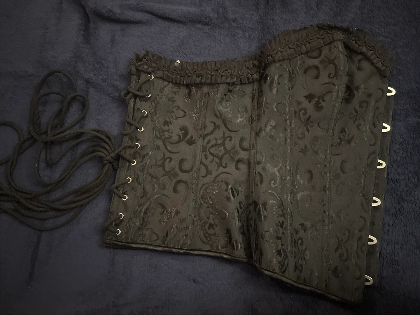 Brand new large corset top! Never been used and I opened it for the pictures only :) it has floral print and a modesty panel 🤍 perfect for costumes or everyday wear <3