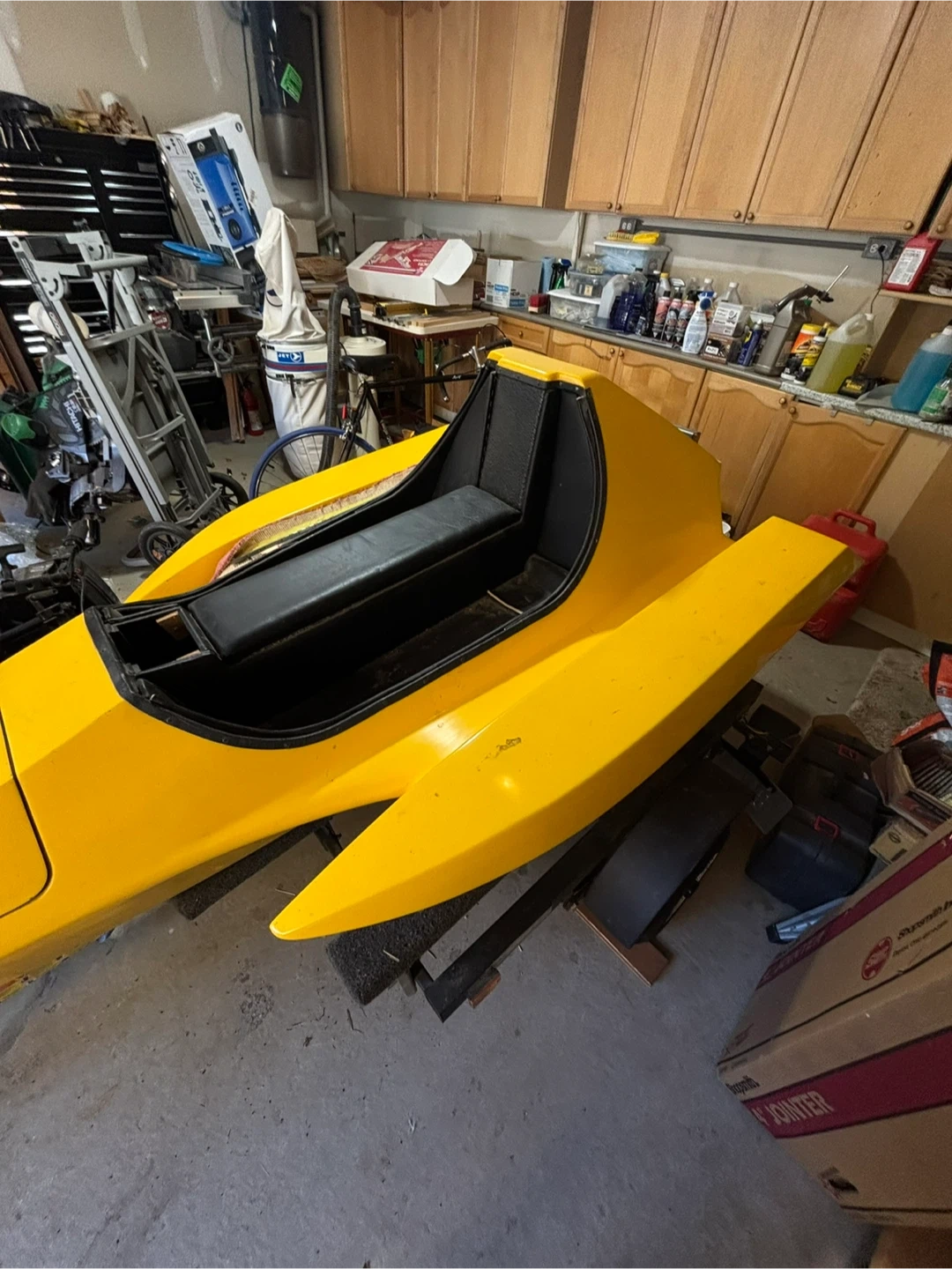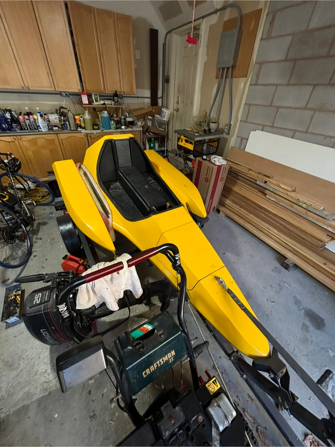15Selling a yellow go-kart frame. It's been sitting in the garage, so it's a bit dusty, but it's ready for a new project! It appears to be in good condition overall. My dad started building this and its been in the water a couple times