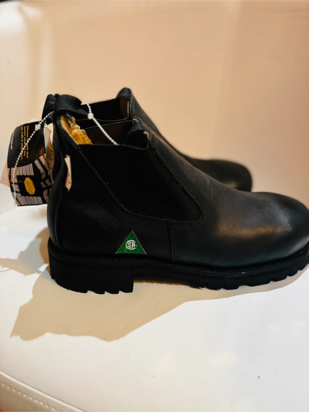 Selling a pair of Dayton black leather boots in size 4 1/2 E. These boots have a Vibram sole and are made in Canada! They are in great condition and ready for a new owner