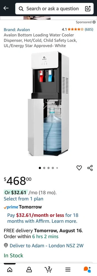 Buy & SellAvalon Water Cooler Dispenser, Hot/Cold, Child LockAvalon Water Cooler Dispenser, Hot/Cold, Child Lock$175Brand new, retails for $450 plus tax. Asking $175. Price is firm. Pick up only. Thanks!WHERE TO MEETCheck LocationView MapSELLERADAMxDALEHamilton Road150 reviews0 chats·0 favorites·8 views