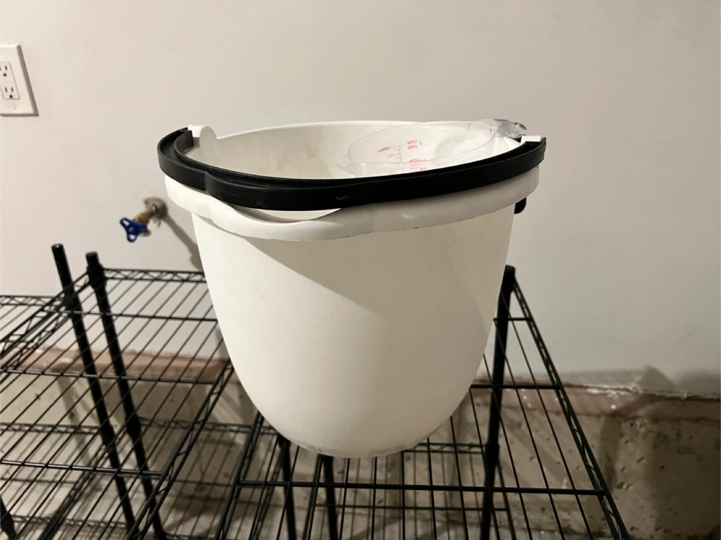 97Selling a white plastic bucket that comes with a handy measuring cup inside. It's perfect for various household tasks or projects. The bucket is in good condition and ready for a new home