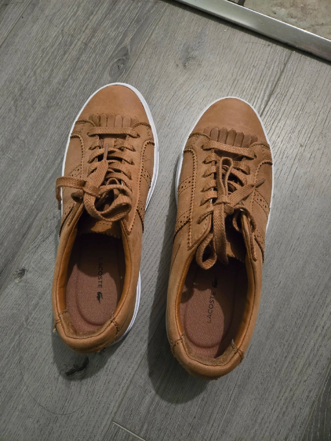 Selling a pair of brown leather Lacoste sneakers. They are in great condition and ready for a new home! Perfect for casual wear and adding a touch of style to your everyday look