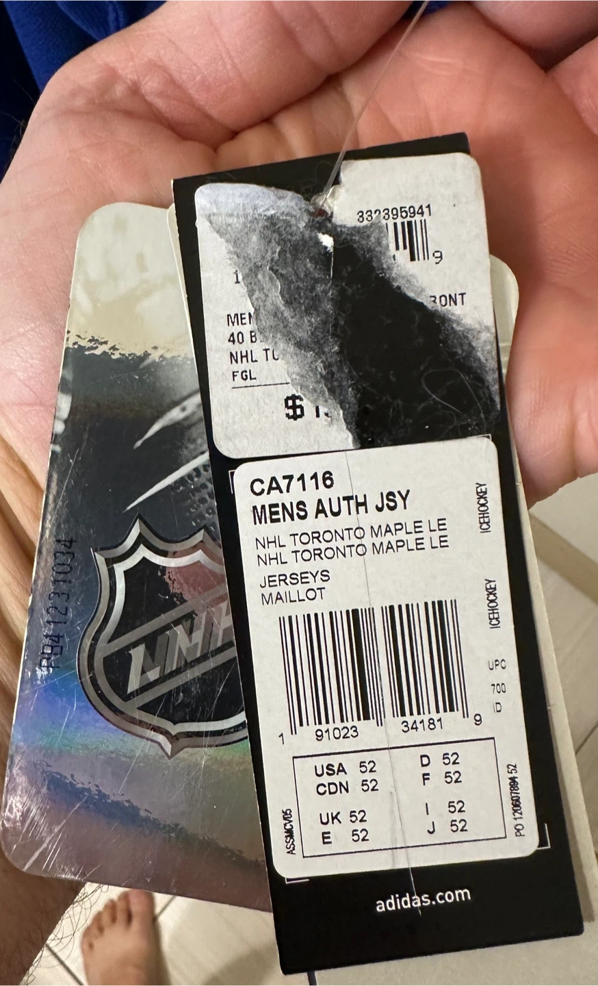 15Selling an AUTHENTIC NEW Adidas NHL Toronto Maple Leafs jersey in size 52 (Men’s Large). The jersey is blue and features the classic Maple Leafs logo. Add your favorite Leaf player name and number on the back.