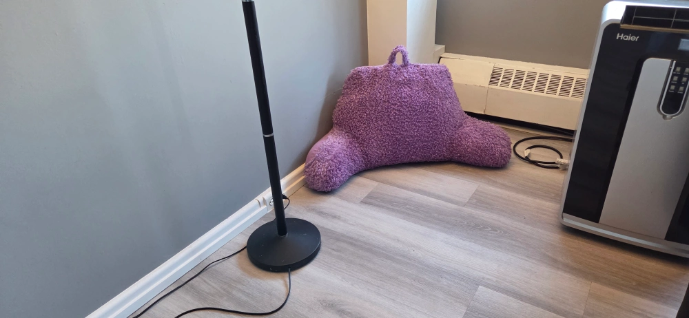 Cozy up with this comfy purple bed rest pillow! It's perfect for reading, watching TV, or just relaxing in bed or on the floor. It has armrests for extra support.