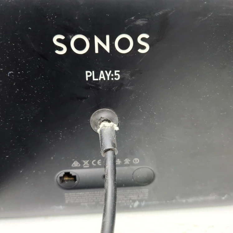 Selling a Sonos Play:5 wireless speaker in black. It has some signs of use, but it is still in good working condition. Perfect for streaming your favorite music throughout your home