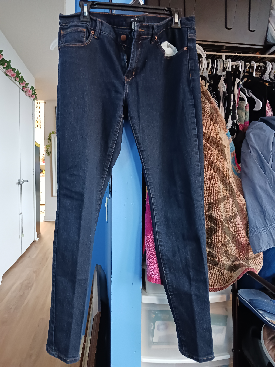 Selling a pair of Forever 21 dark wash jeans. They are in great shape and ready for a new home! The size is 30 (US/CA). Perfect for everyday wear!
