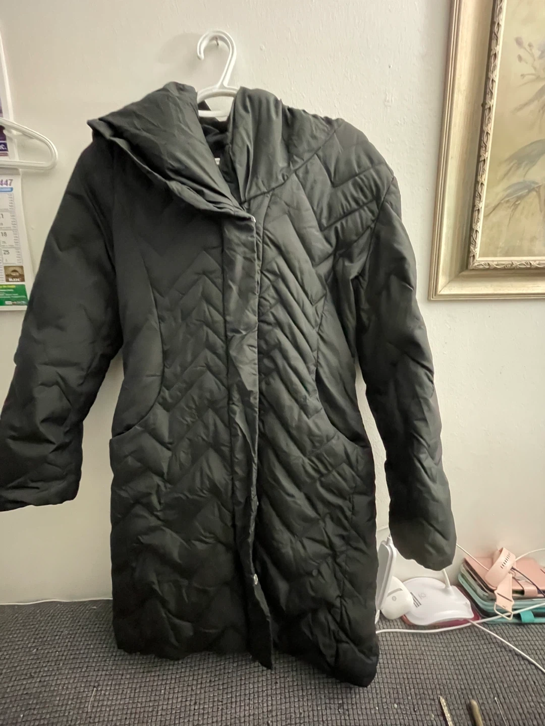 Selling a black puffer coat. It's in great condition and perfect for the colder weather. It's a stylish and warm choice for those chilly days small size $25 pick up Markham and Lawrence.