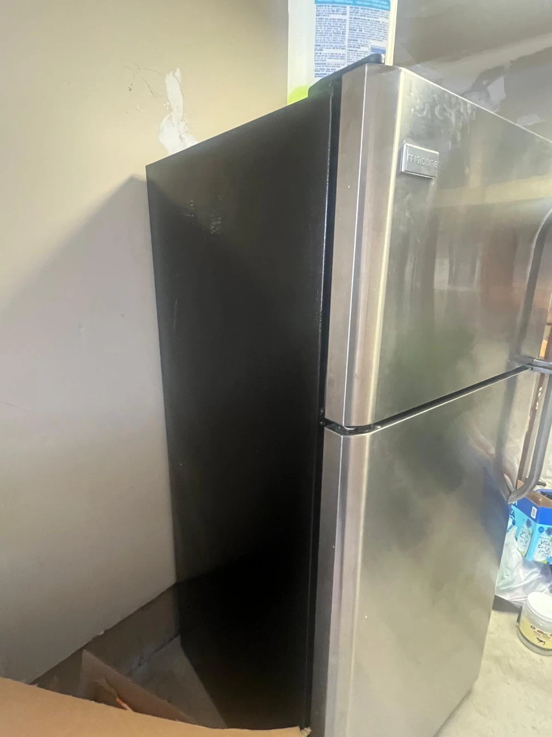 Selling a Frigidaire fridge with a stainless steel finish. It's in good condition and ready to keep your groceries cool! Perfect for a small apartment or as a second fridge in the garage