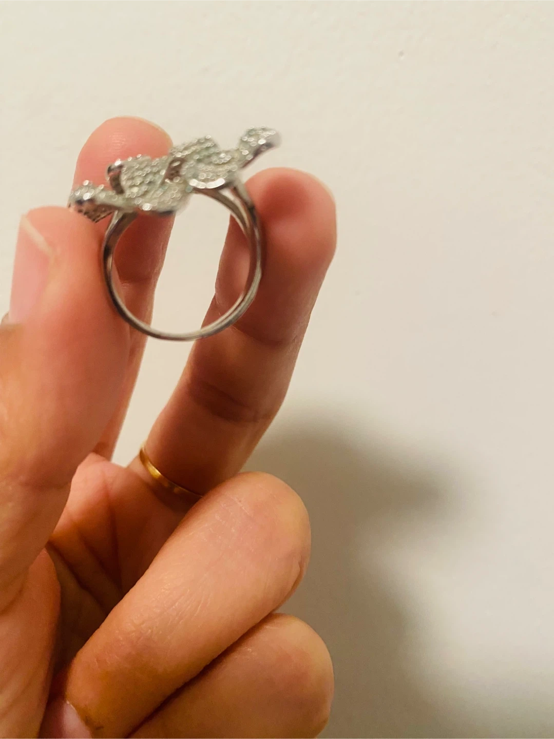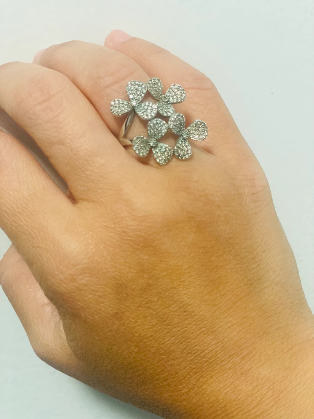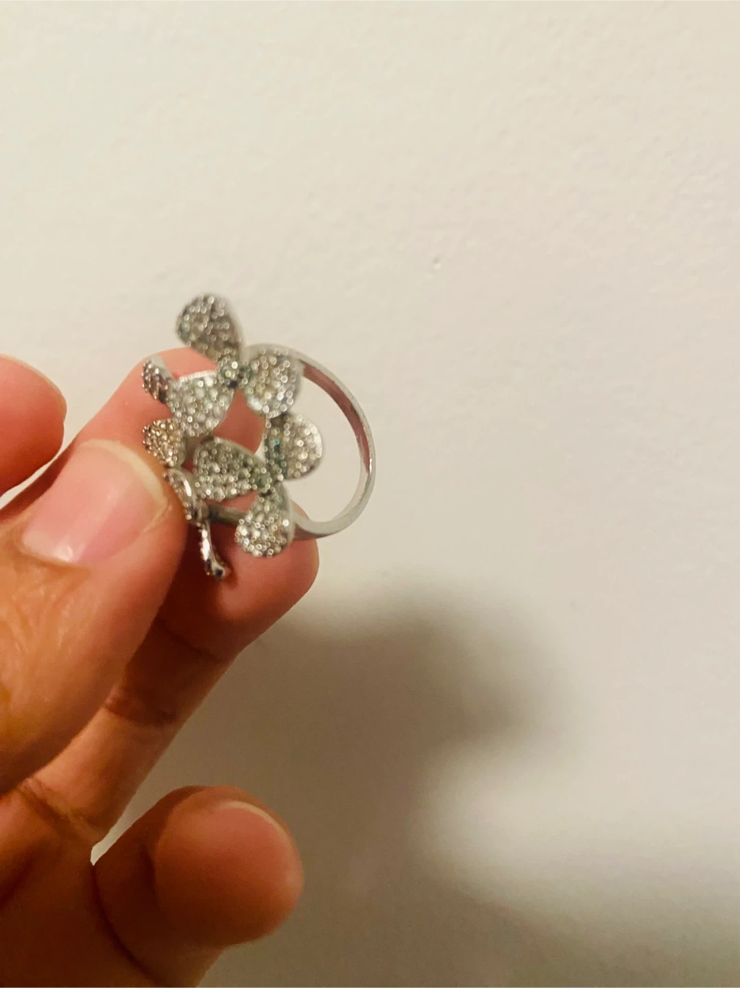 This is a gently used lovely silver toned ring with a flower design. It's in great condition and would be a beautiful addition to any jewelry collection.