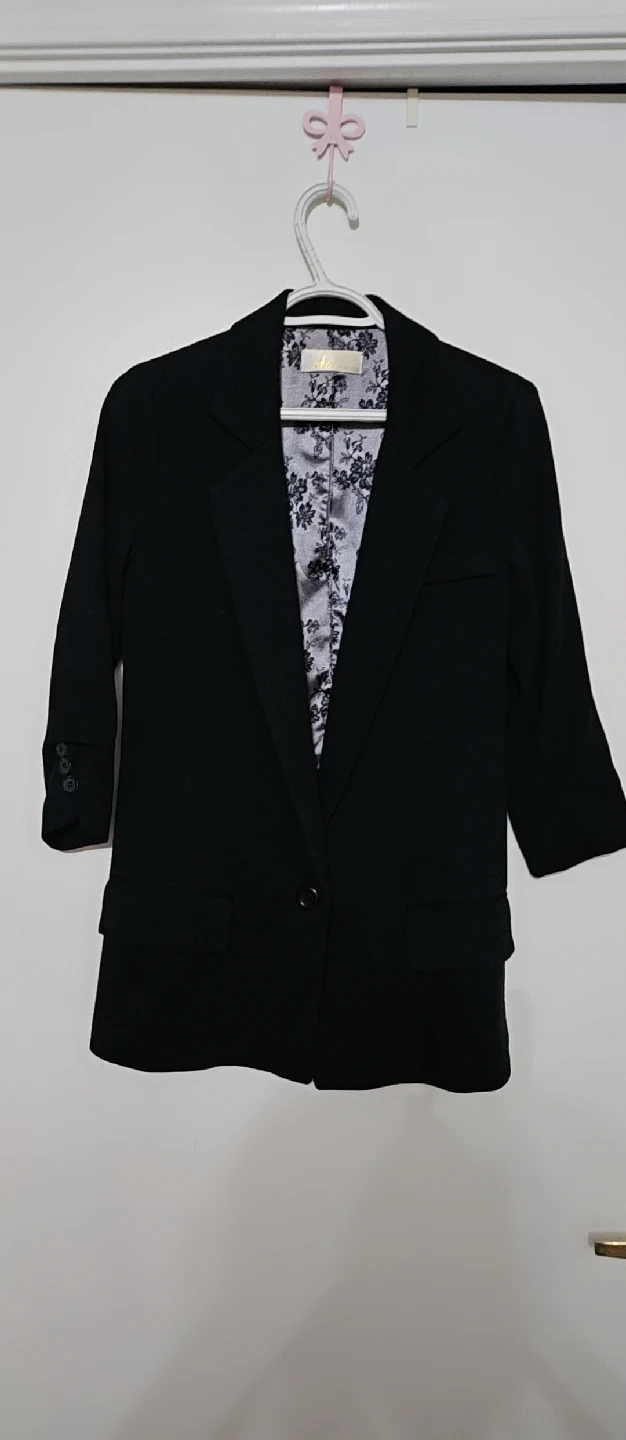 💋🖤🫶A stylish black blazer from Elie Tahari. It's a size S and features a unique floral pattern on the inside lining. Perfect for adding a touch of sophistication to any outfit!
