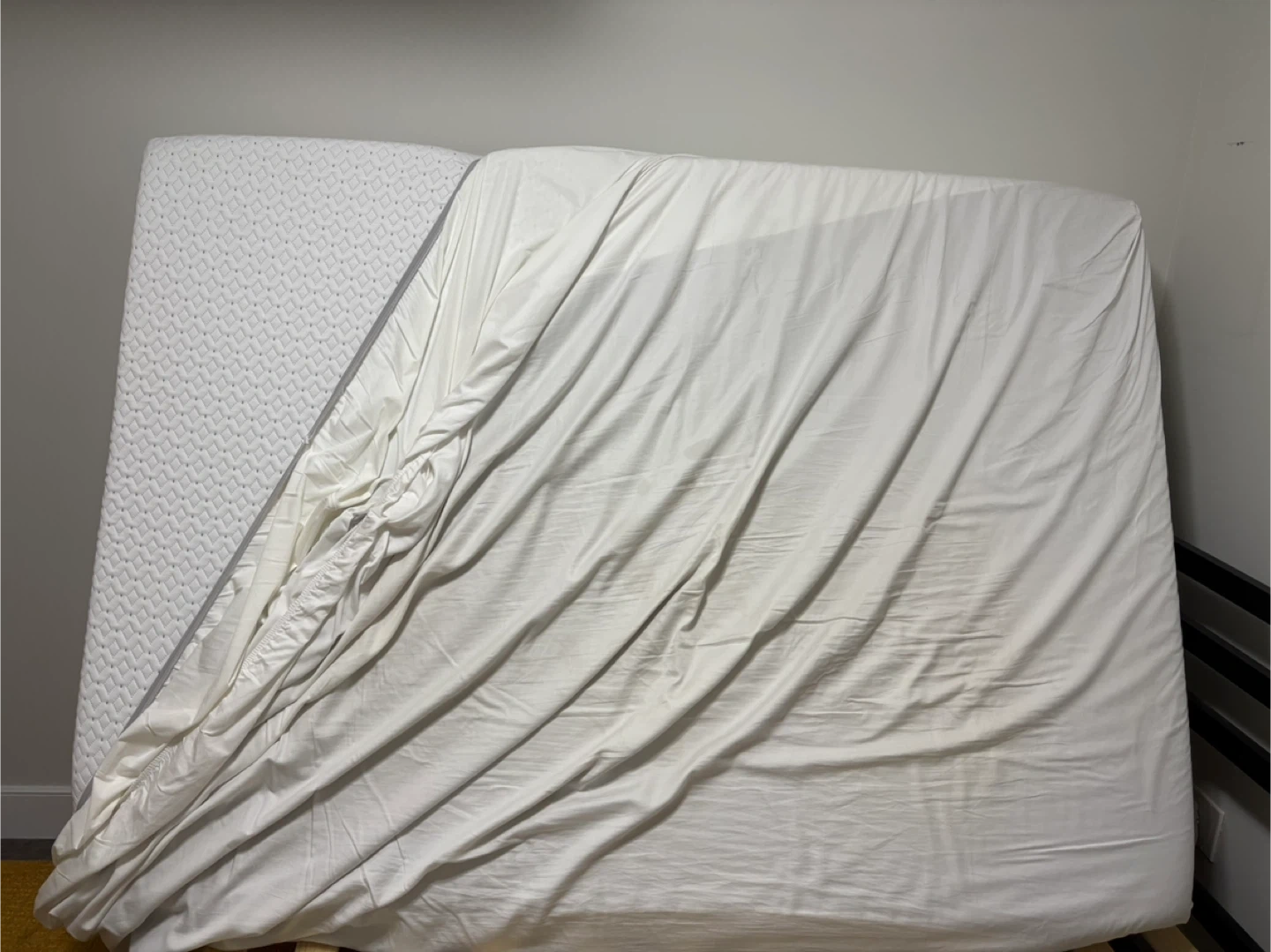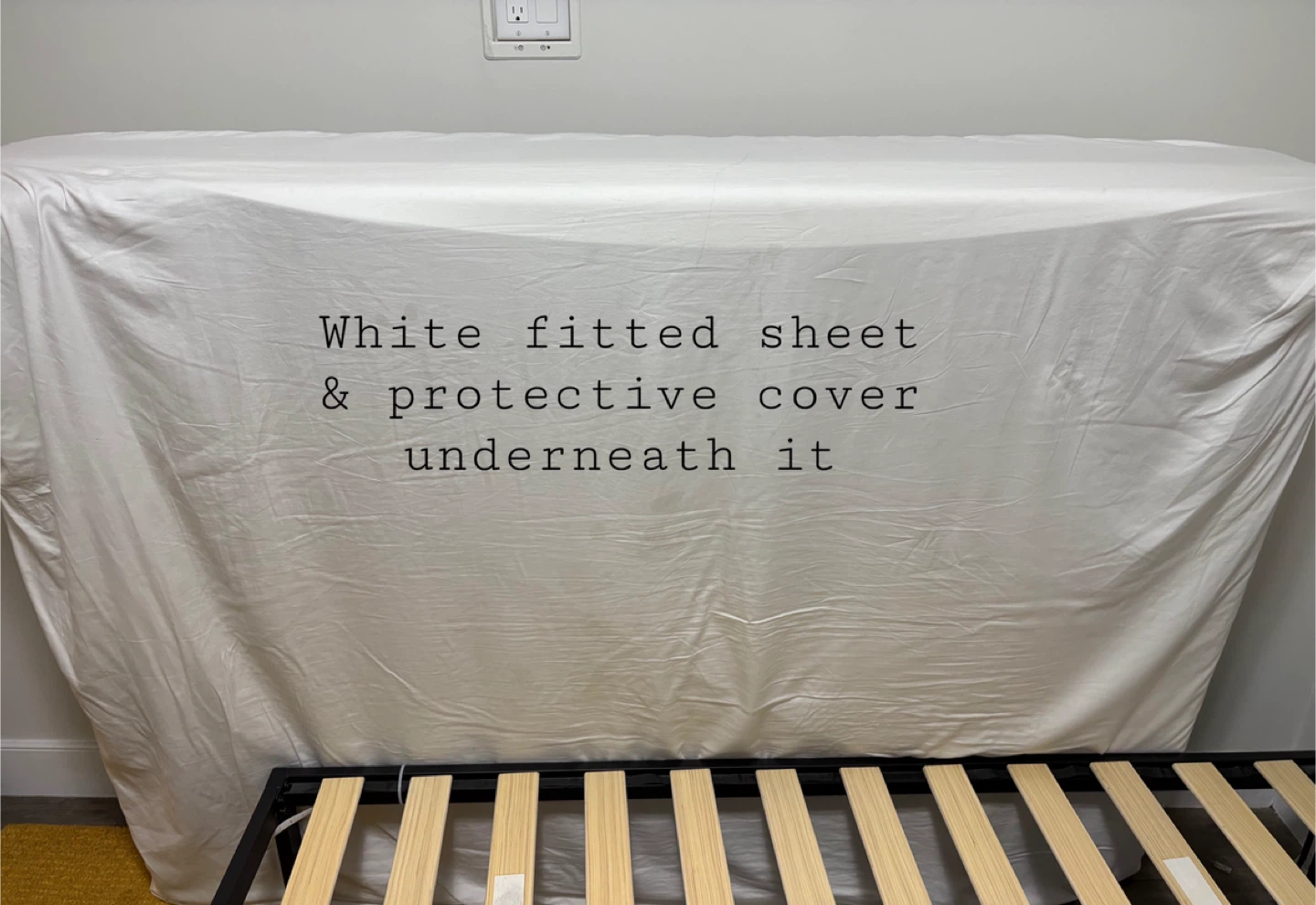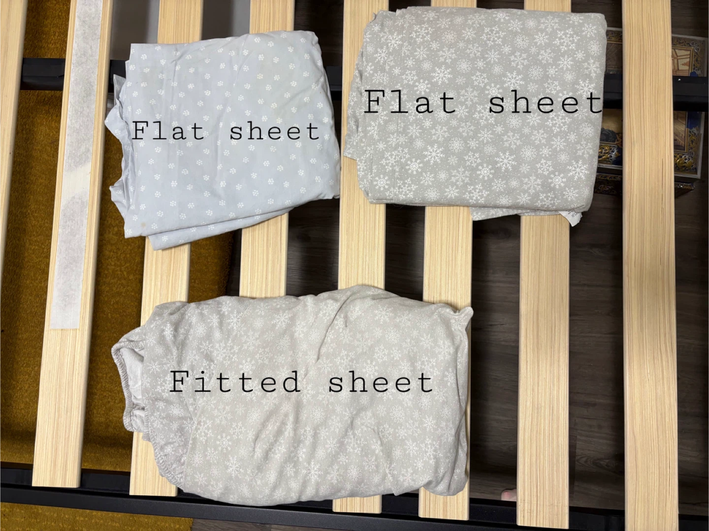 The protective cover and 1 flat sheets have stains. But they can be used when transporting so the mattress doesn’t dirty.