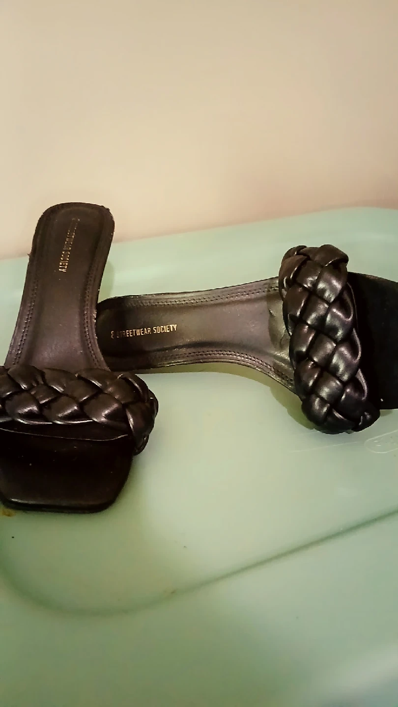Streetwear Society heels in a classic black colour! These heels feature a stylish braided strap design. They're perfect for dressing up any outfit. Great condition!