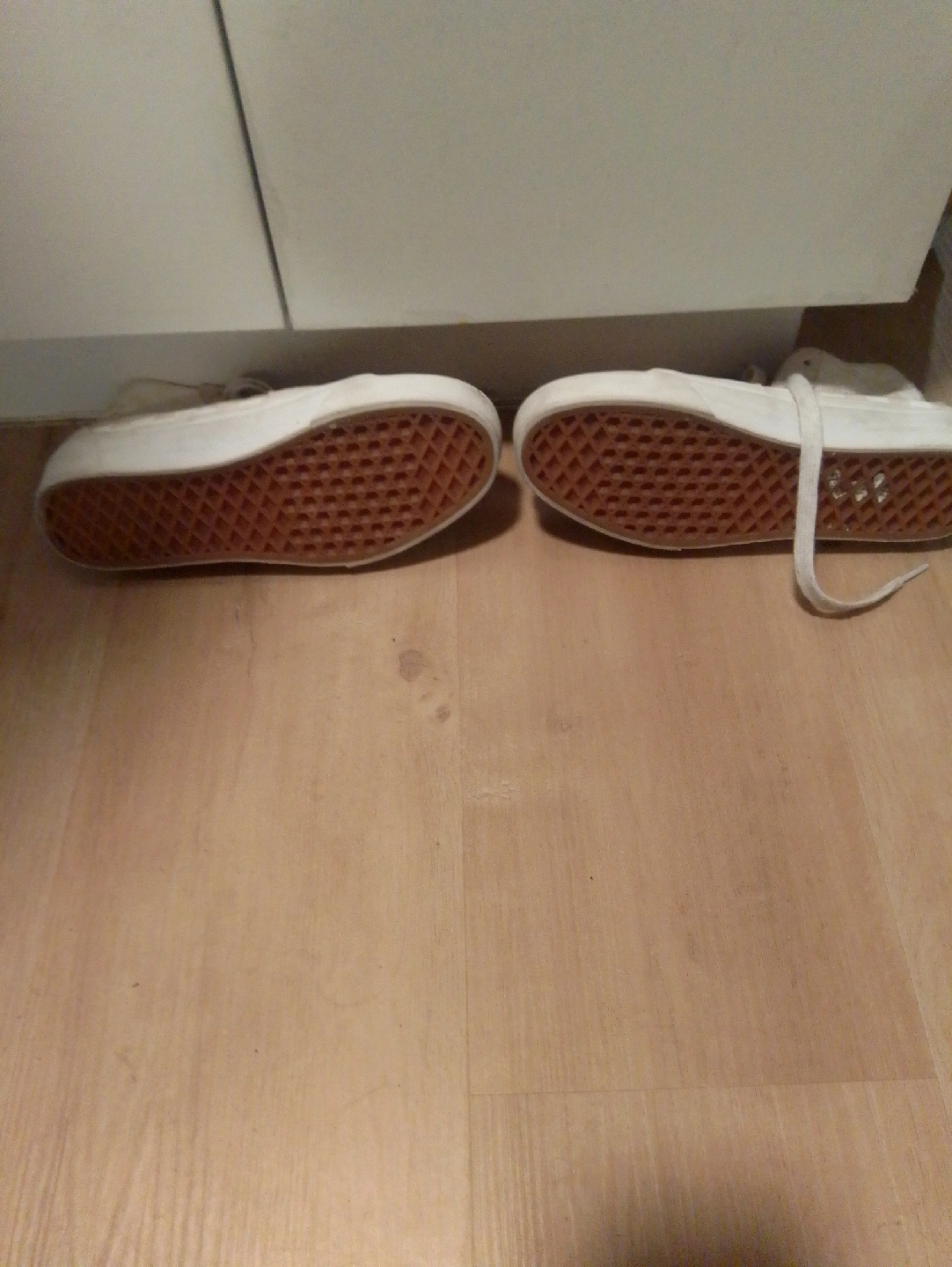 Selling a pair of Vans Sk8-Hi shoes in off-white. They show some signs of wear, as you can see in the pictures, but still have lots of life left! Great for skating or just casual wear