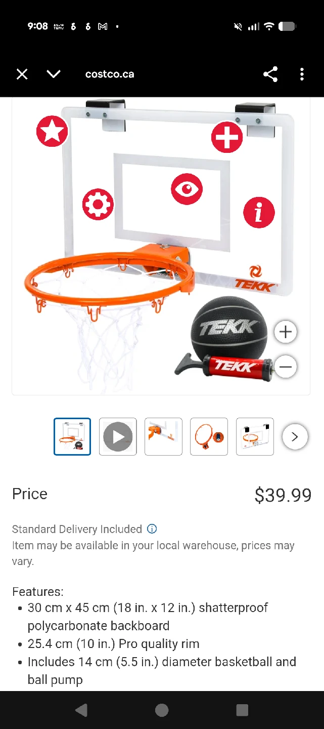 Selling a brand new TEKK Monster Jam mini basketball hoop still in its original box! It features a pro-grade polycarbonate backboard and a spring-loaded breakaway rim. The backboard measures 30 cm x 45 cm (18 in x 12 in). Also includes a 14 cm (5.5 in) diameter basketball and ball pump! Originally bought for $39.99