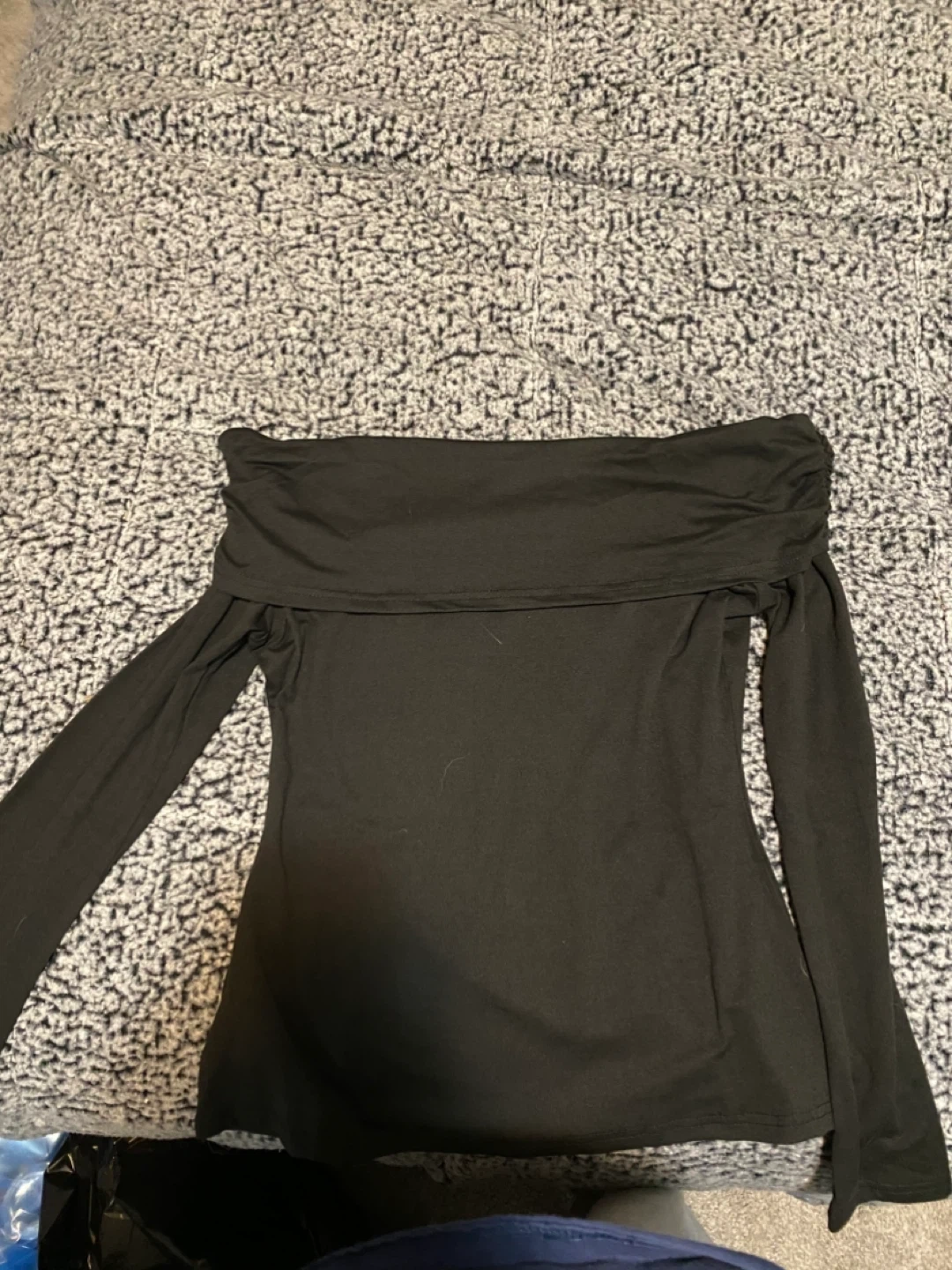 Selling a cute black off-the-shoulder long sleeve top! It's in great condition and would be a great addition to your wardrobe