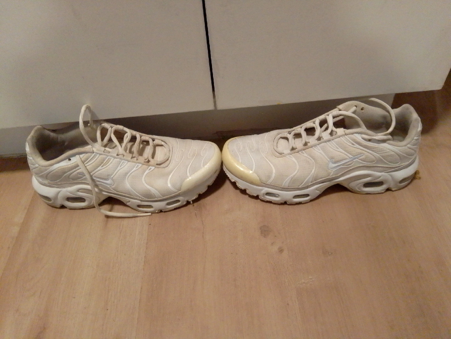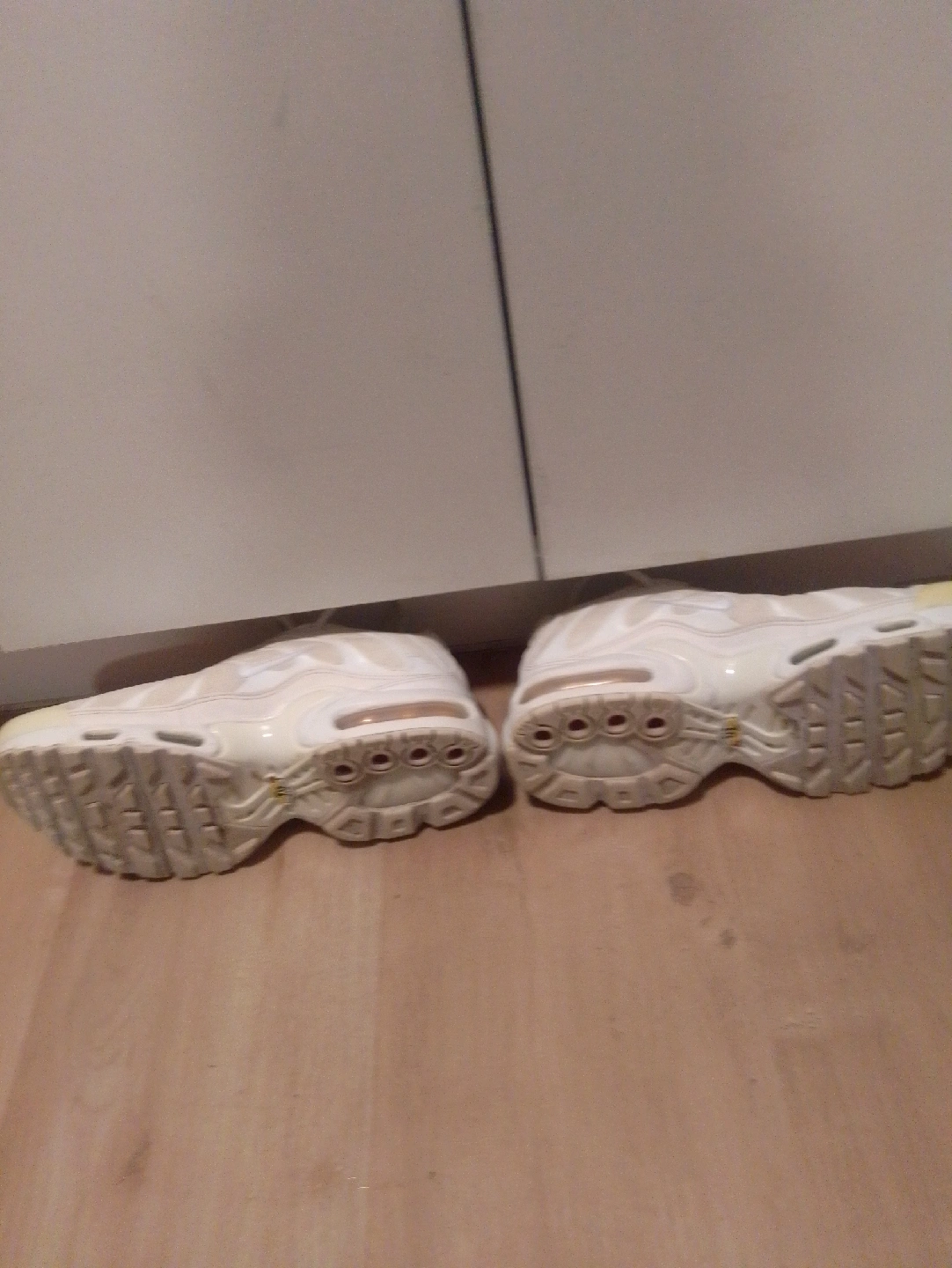10Selling a pair of Nike Air Max Plus TN sneakers in a cream/white colourway. They are in good condition and are a size 9.5 US. These are super comfortable and stylish, perfect for everyday wear!
