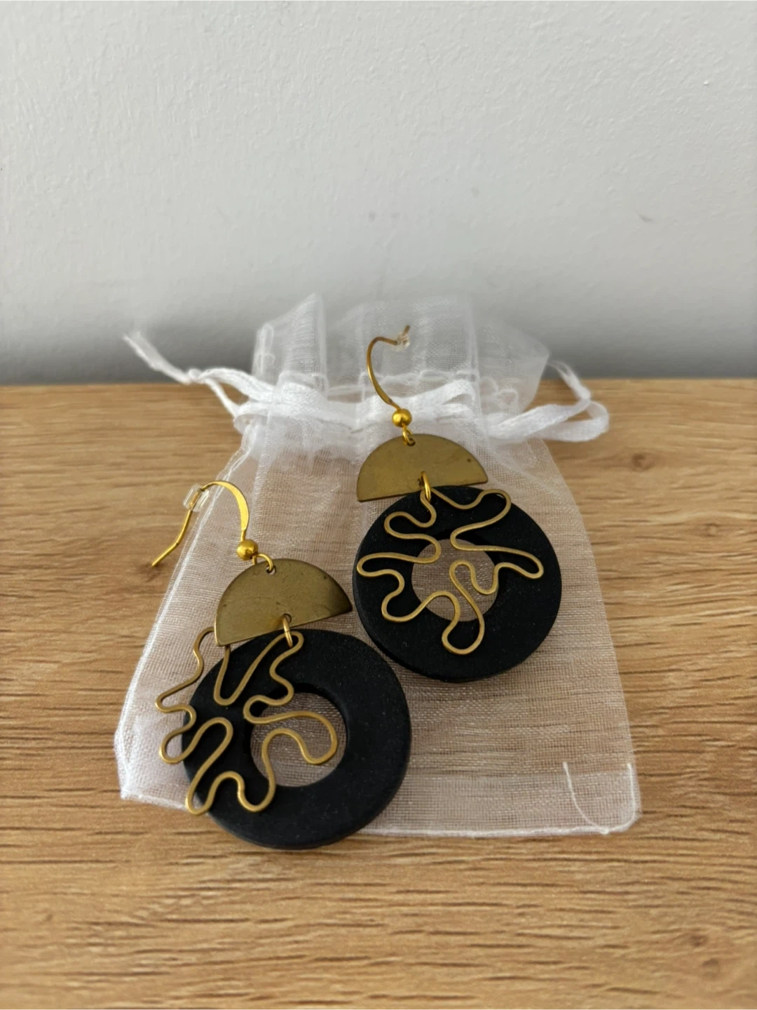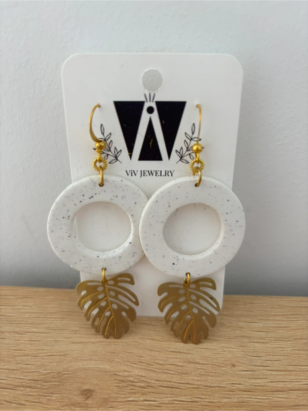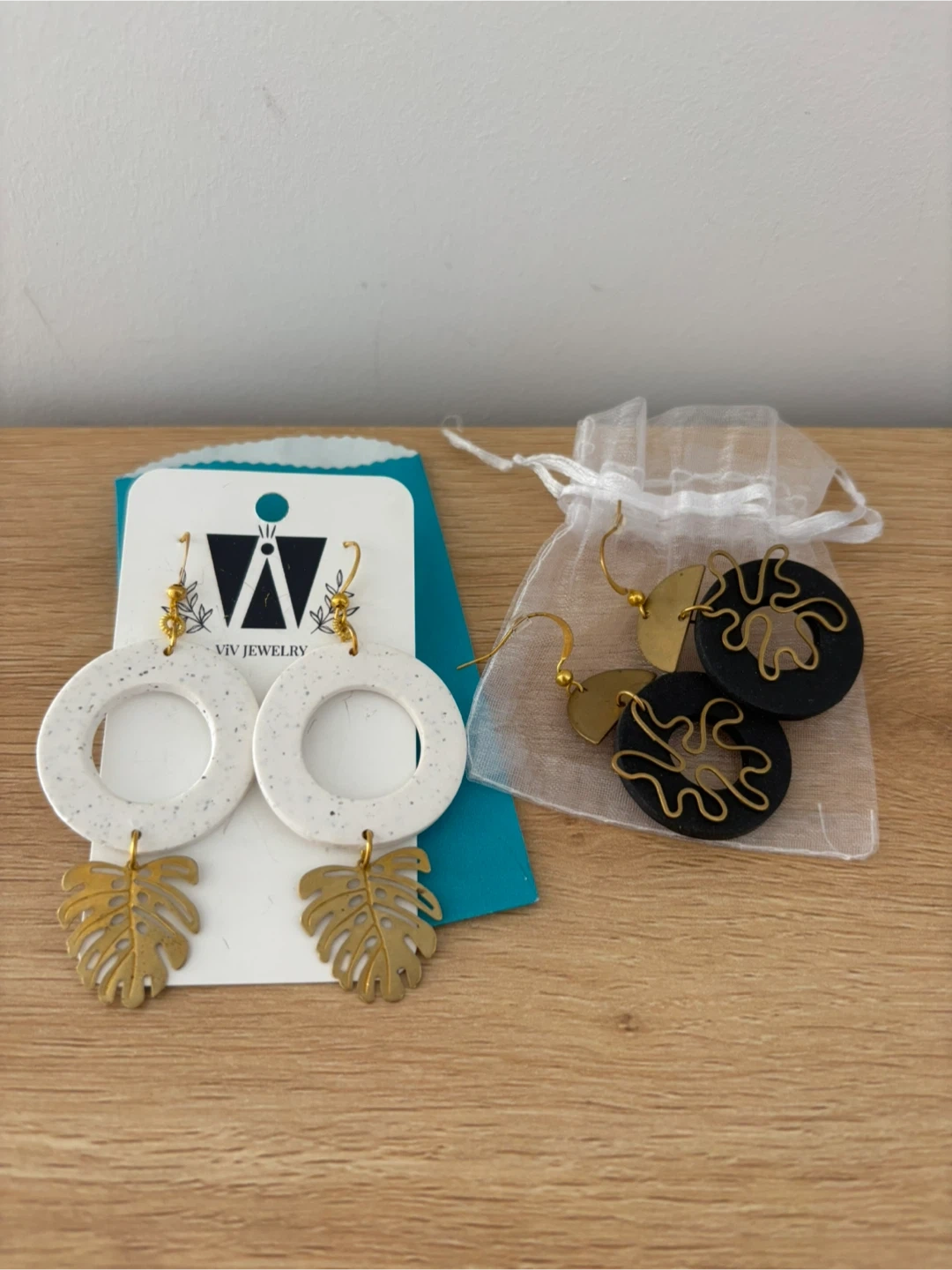 Here are some cute earrings from VIV JEWELRY! One pair is black with a gold design, and the other is white with a gold leaf design. They're perfect for adding a little something special to any outfit. Giving both pairs away!