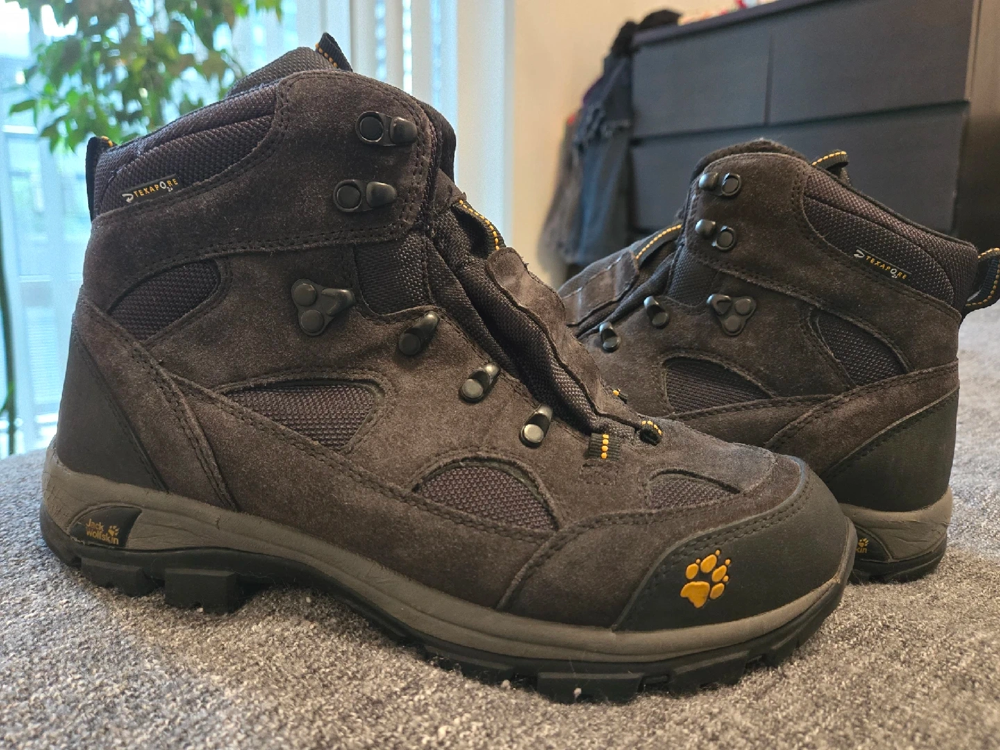 81Selling a pair of Jack Wolfskin hiking boots (size 42 men) with Texapore, a high-quality German technology. They're in great shape and ready for your next outdoor adventure! The boots feature a durable construction, providing excellent support and traction. Perfect for hiking and other outdoor activities. The boots have no laces.