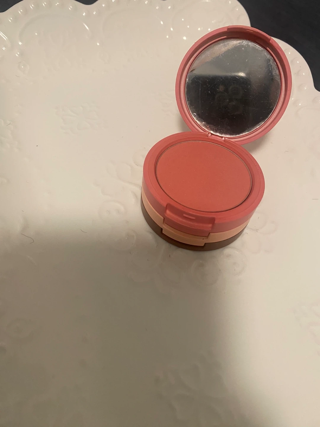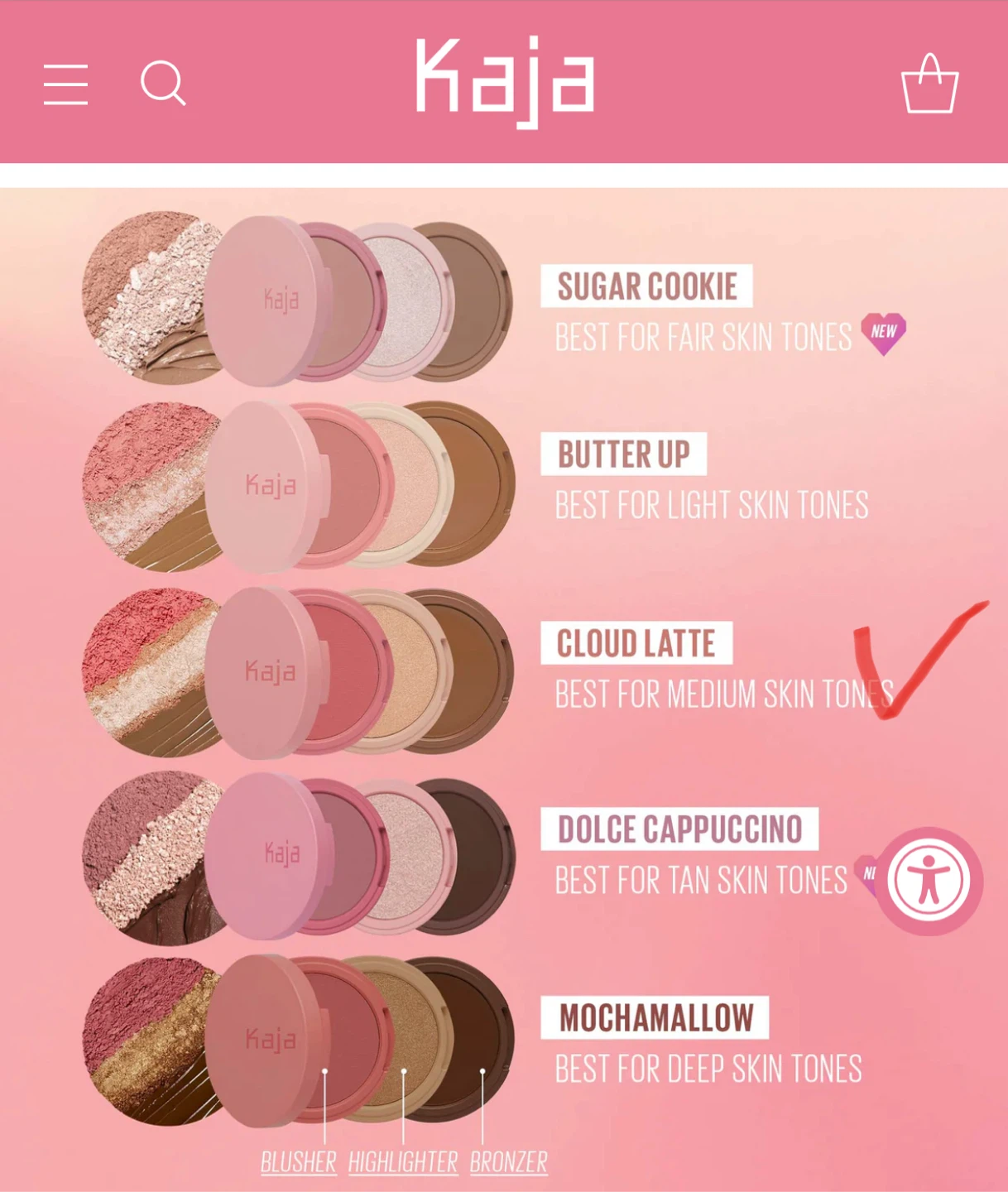 Selling a Gently used Kaja Beauty Bento Bouncy Eyeshadow Trio in the Cloud Latte shade. This trio is perfect for medium skin tones and includes a blusher, highlighter, and bronzer. Get that perfect glow!.