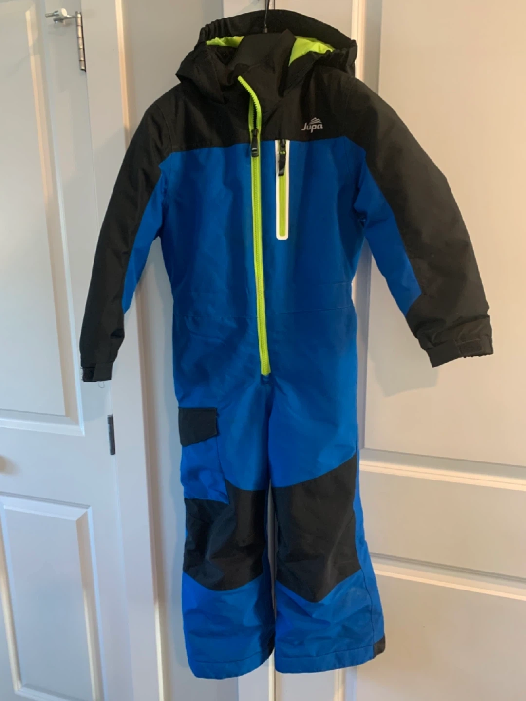 Keep your little one warm this winter with this Jupa snowsuit! It features a vibrant blue and black design with a neon yellow zipper. Perfect for outdoor adventures and snowy days