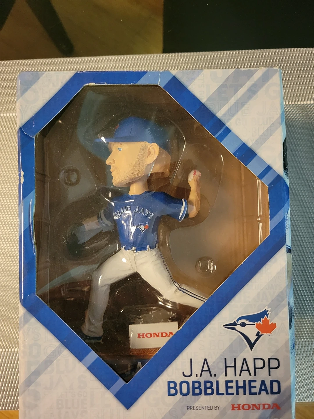 J.A. HAPP Toronto Blue Jays Bobblehead Limited Edition-2018 Hand painted limited edition bobblehead. Approximately 7" tall. This bobblehead was given away on the 2nd of July, 2018 at the Rogers Centre in Toronto when the Blue Jays took on the Detroit Tigers.