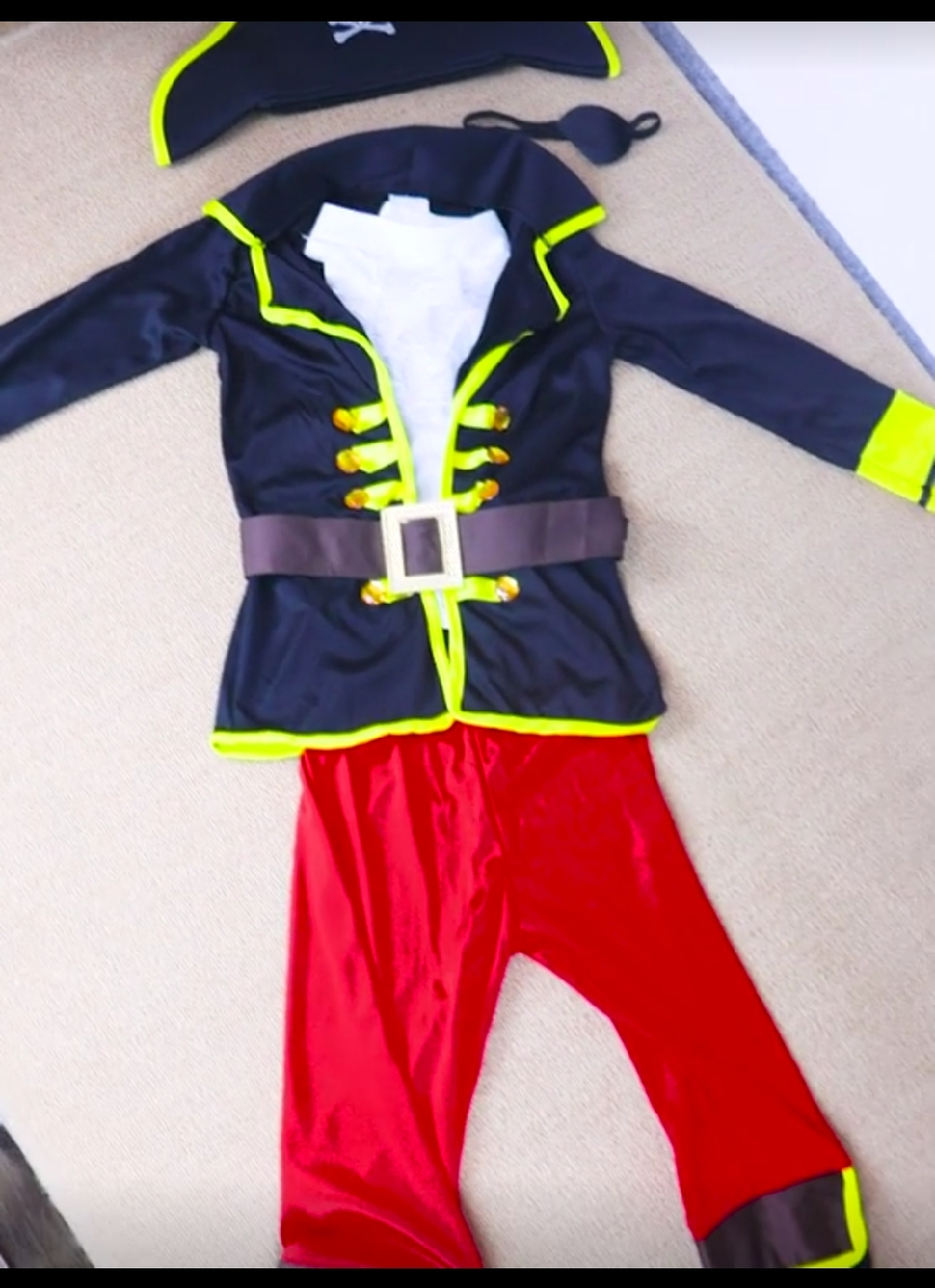 Ahoy, mateys! Get ready for some swashbuckling fun with this adorable pirate costume! Perfect for Halloween or dress-up. This costume is new. It includes a hat, jacket and pants. No weapons included!
