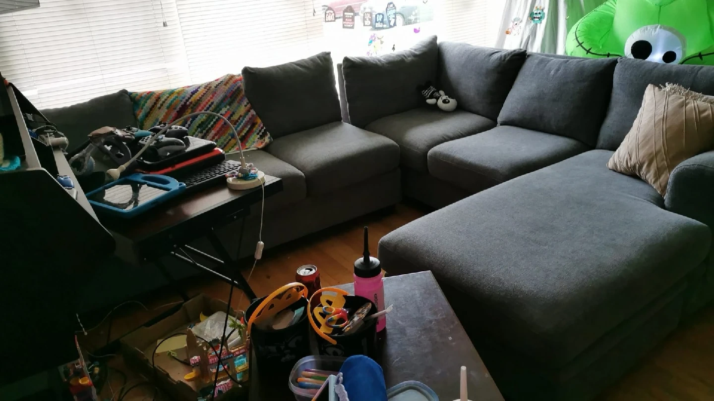 Selling a comfy grey sectional sofa. It's in great condition and perfect for a living room or family room. The sectional configuration provides ample seating and a cozy spot to relax. It would be a great addition to any home!