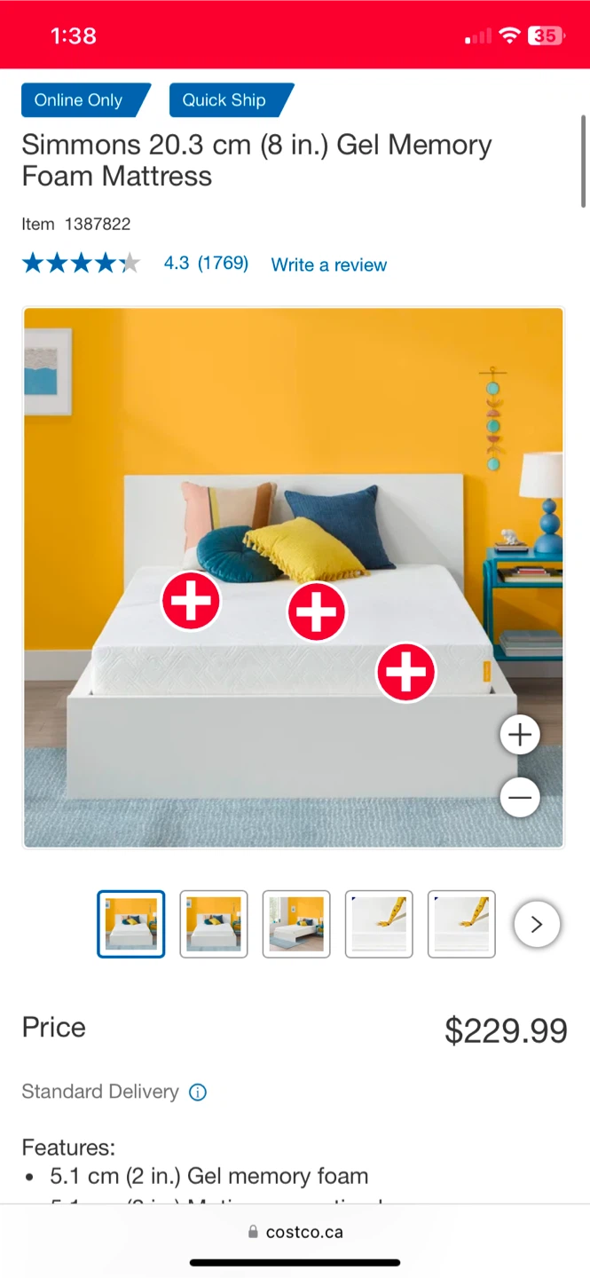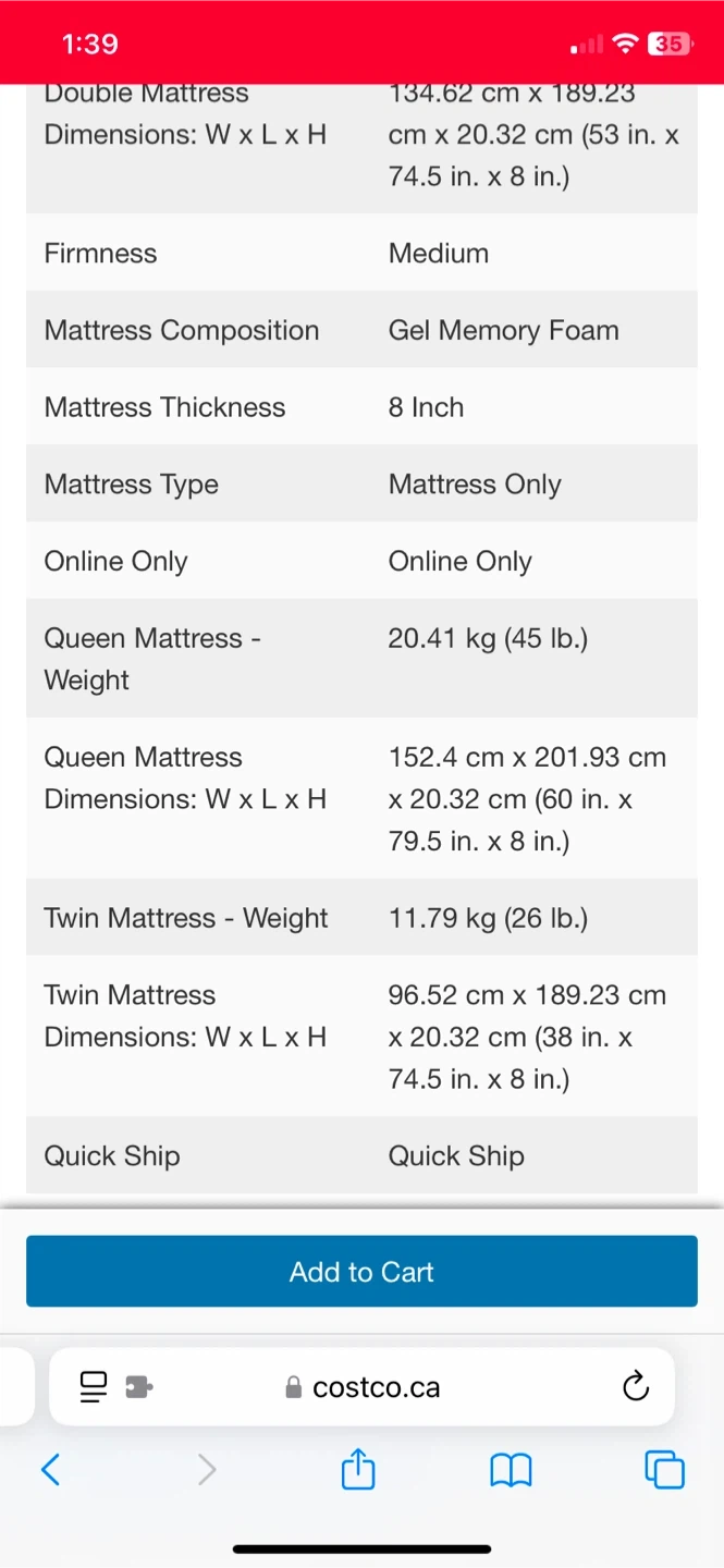 Costco.ca Simmons 8-in Gel Memory Foam Twin Mattress