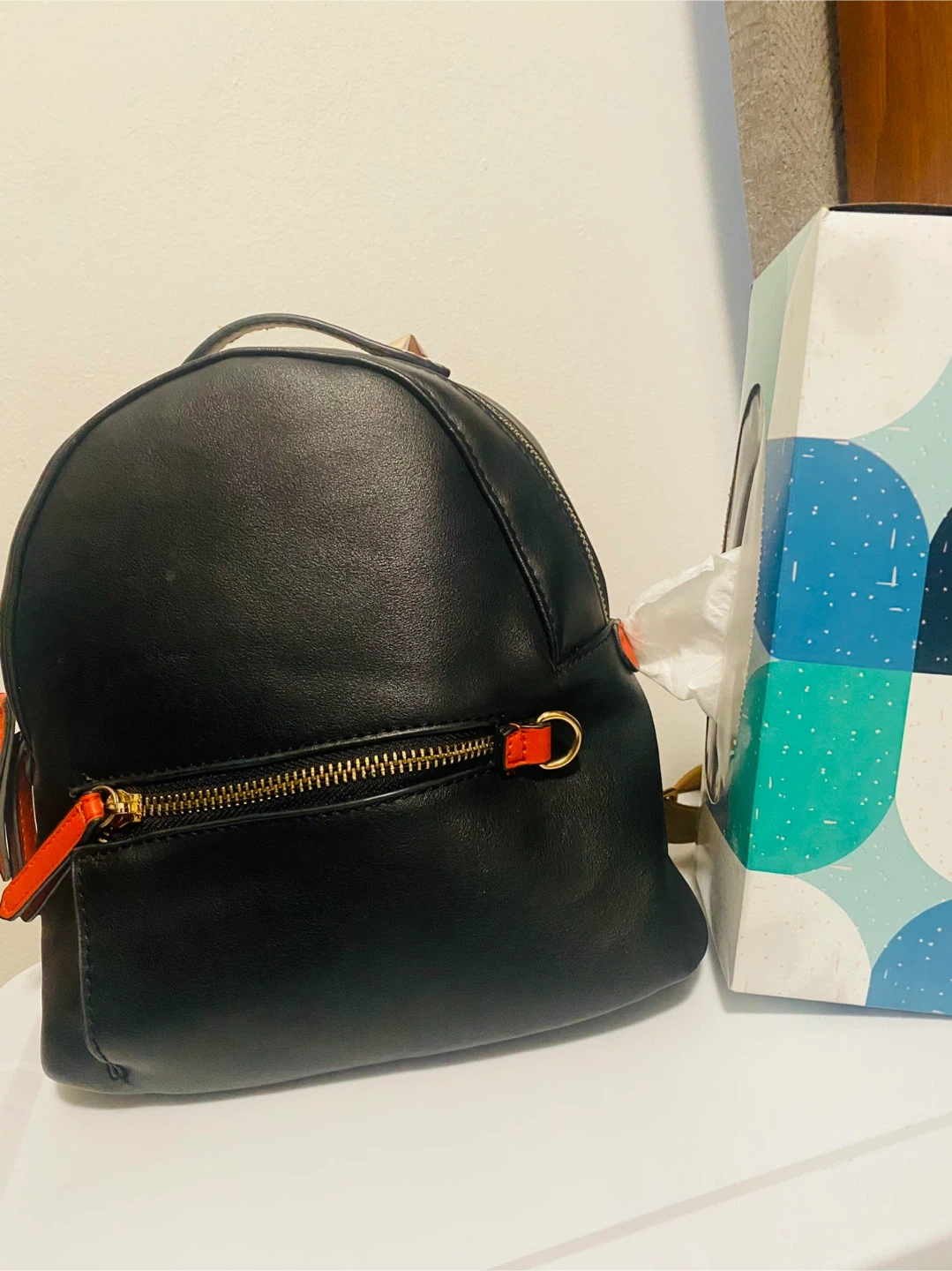 This is a stylish Miniso backpack in good condition, perfect for carrying your essentials. It features a compact design with a main compartment and an additional front pocket for easy access to smaller items. The adjustable straps ensure a comfortable fit.