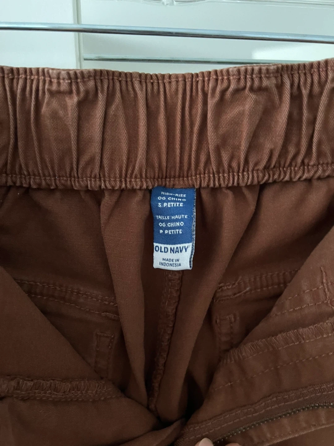 Selling a pair of Old Navy high-rise OG chino pants in size small petite (fits more like small-medium). They're a nice brown colour and in great condition! Relaxed fit with a partially elasticized waist for a good fit