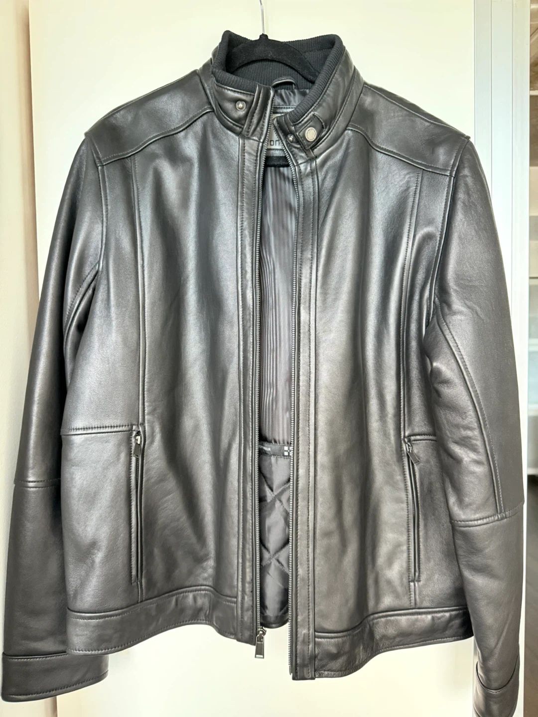 Looking to sell a Boston Harbour black leather jacket. It's a size L/G and made with New Zealand lamb leather. Great for a night out or just staying warm! Brand new never been worn.