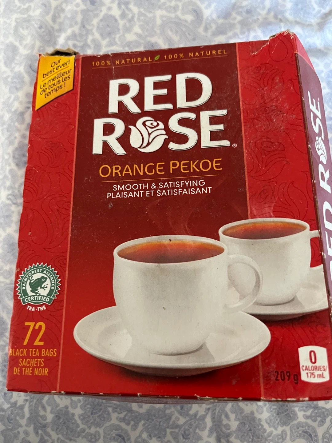 307Selling a box of Red Rose Orange Pekoe black tea bags! This box contains 70 tea bags, perfect for a smooth and satisfying cup of tea. It's 100% natural too Location for pickup INTERSECTION OF KENNEDY DENISON ONE BLOCK NORTH OF STEELES CLOSE TO PACIFIC MALL