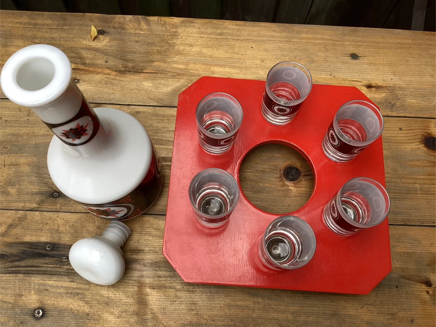 184$35.00 - Selling a vintage liquor decanter set! It comes with the decanter, stopper, six shot glasses, and a red serving tray - Clean & in MINT condition - Shipping available - Located at Pape ave & Cosburn ave Toronto - Call Patrick @ 416-930-8338. - Thanks & check out my other posts