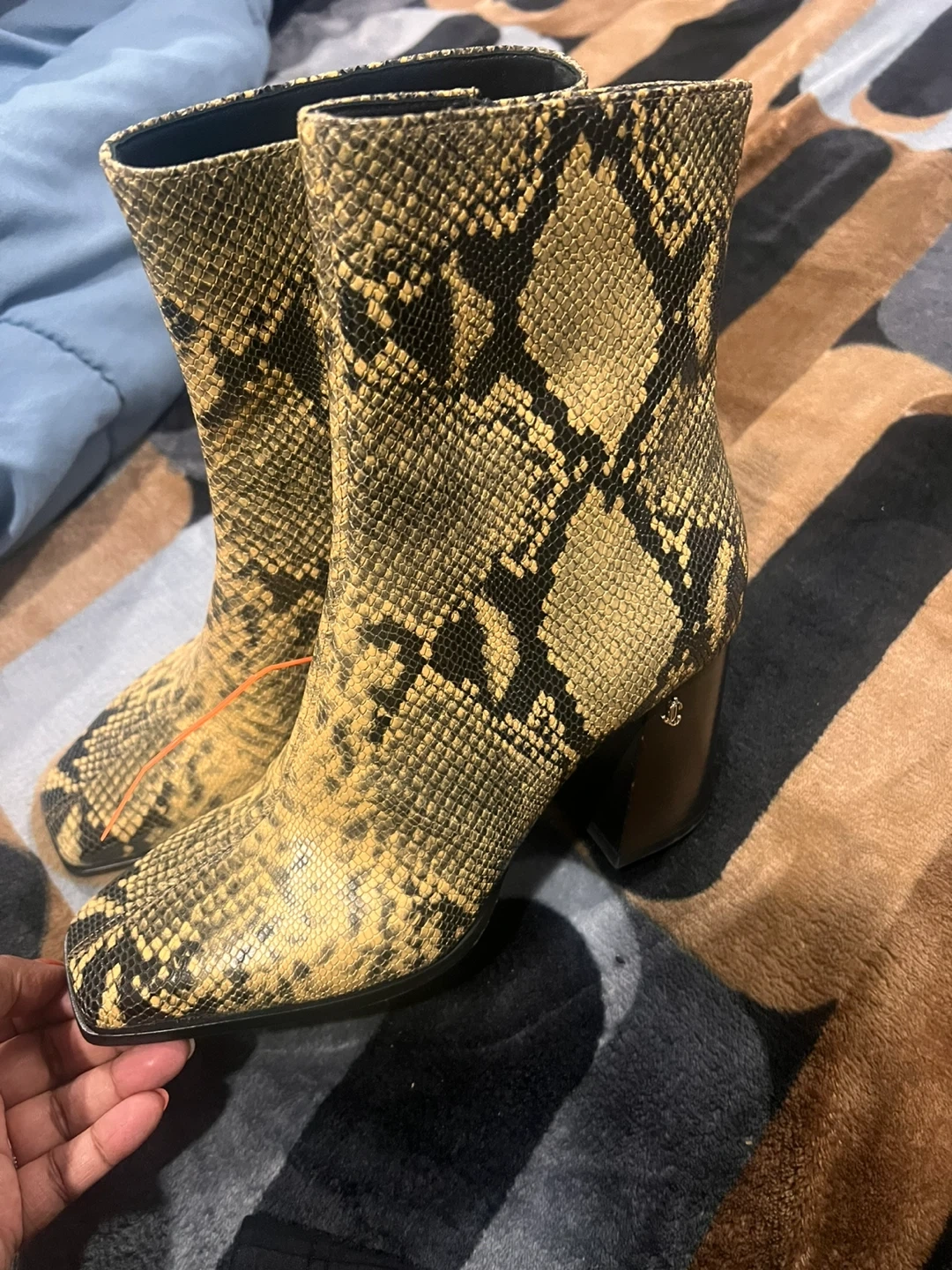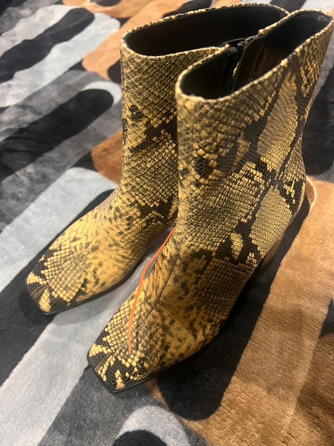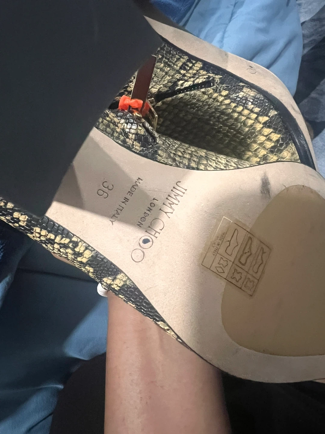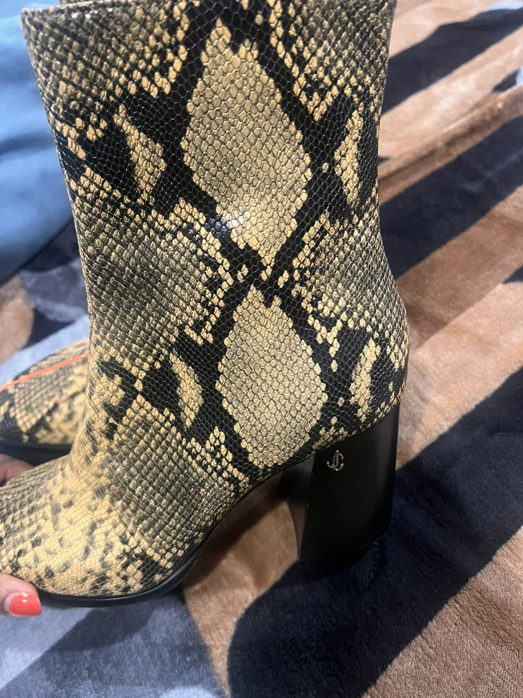 Selling a pair of Jimmy Choo ankle boots with a snakeskin pattern! These stylish boots are a size 36 (European sizing). Made in Italy and feature a sleek design, perfect for adding a touch of luxury to any outfit