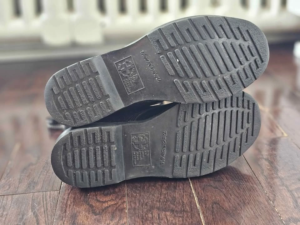 "The 1460 Pascal Mono retains all the history and tough-girl durability of the original, iconic 8-eye — and all the DNA, like a scripted heel-loop, visible stitching and grooved edges on a air-cushioned oil and fat resistant sole. And now, it's served up in monochromatic tip-to-toe black, in the super-soft, no-break-in Virginia leather.