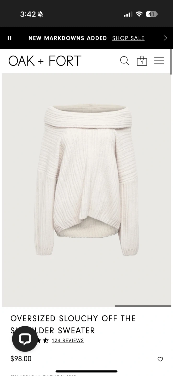 Selling an OAK + FORT oversized slouchy off the shoulder sweater. It originally retailed for $98. It's a lovely piece! Only worn once