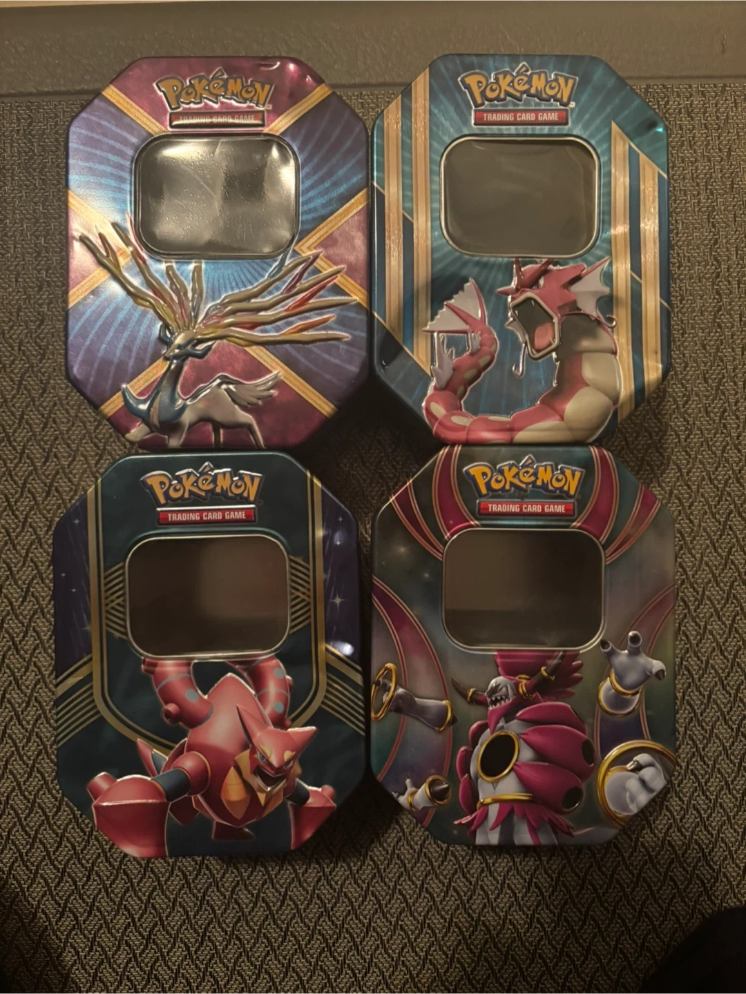 Selling a set of four Pokémon Trading Card Game tins! They feature different Pokémon characters on each tin. Perfect for storing your cards or other small items
