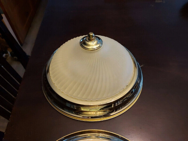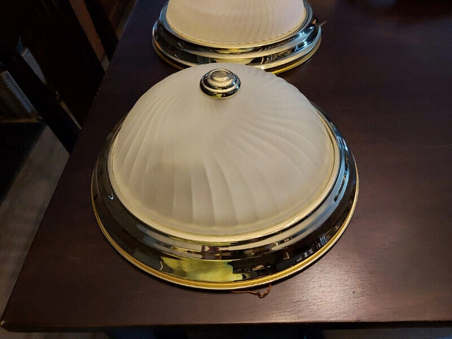 Ceiling Lights with bulbs, working. Just took these down, not my style. Gold Trim with frosted glass molding. 2 different styles, see photos. See photos for measurements Pickup ONLY - Dallas Area
