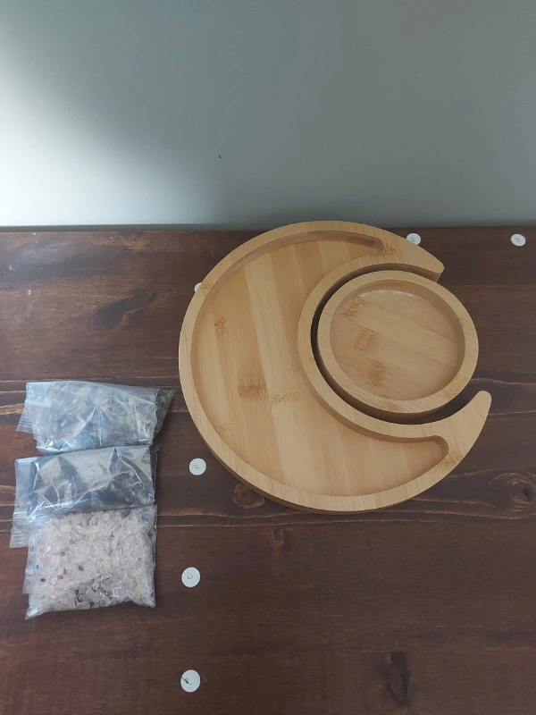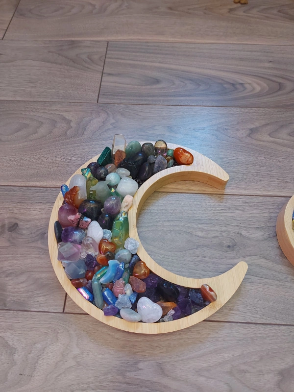Like new light wood tray for gemstones, healing crystals, stones and anything you can imagine. Tray is sold EMPTY, gemstones are for display ONLY, does NOT include carvings, stones, or chips. Does come with 3 small bags of gemstone chips. Chips have been previous loved so they have been mixed slightly. See photos for measurements Sold as a set only Pickup is in Dallas, Kamloops - If you are unable to get to Dallas please do not reply to this ad.