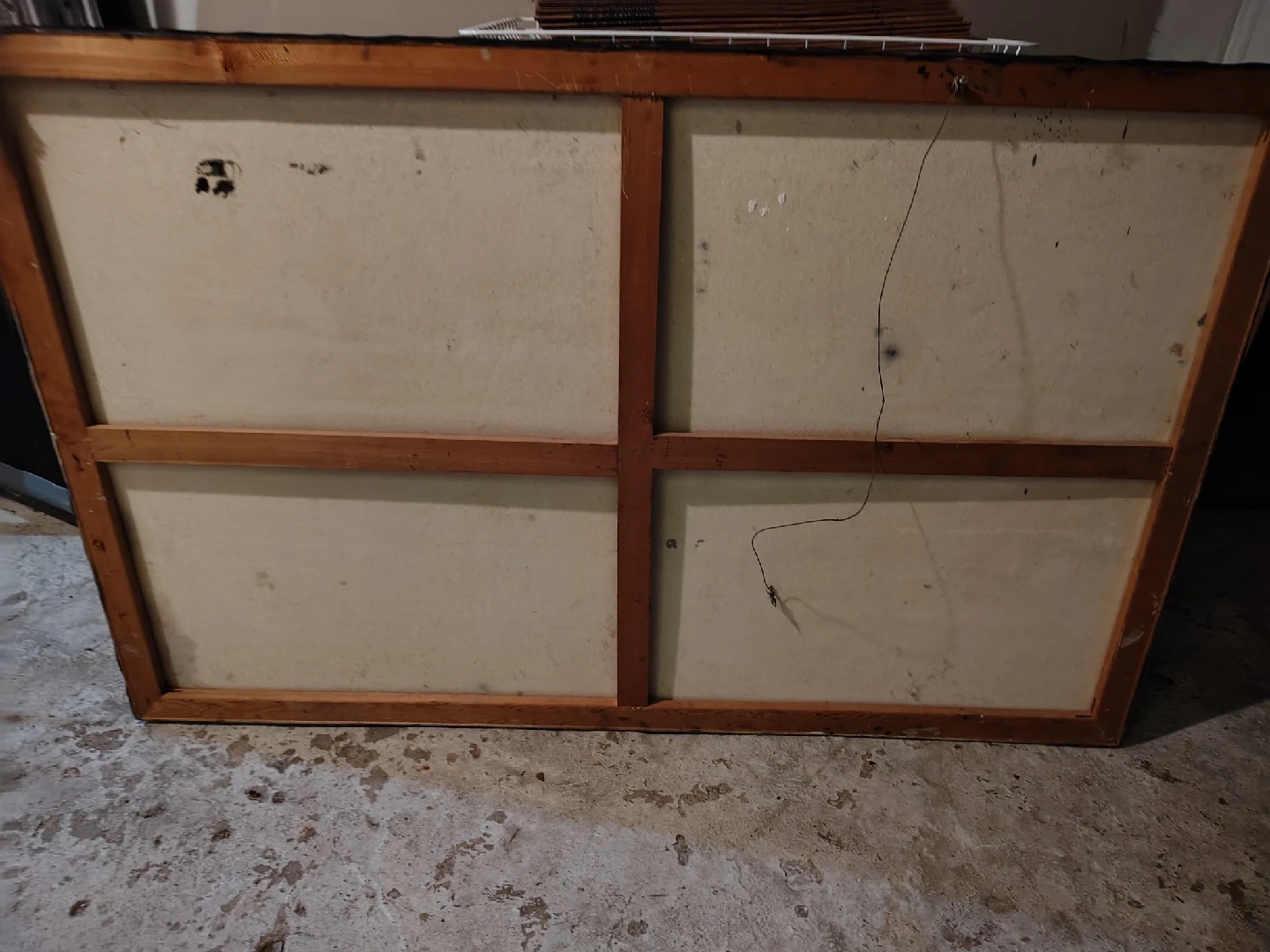 I purchased this piece directly from the artist in Vancouver in 1998, had it shipped, and professionally re-stretched on a wood frame in Toronto. It has been carefully stored ever since, never hung and waiting for the right new home.