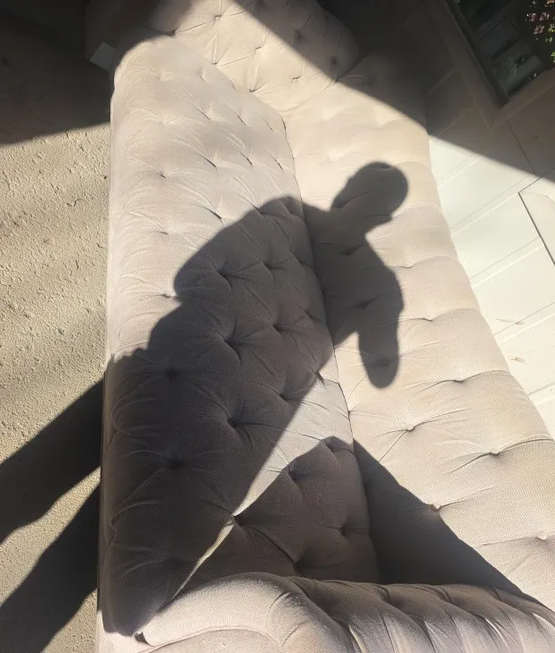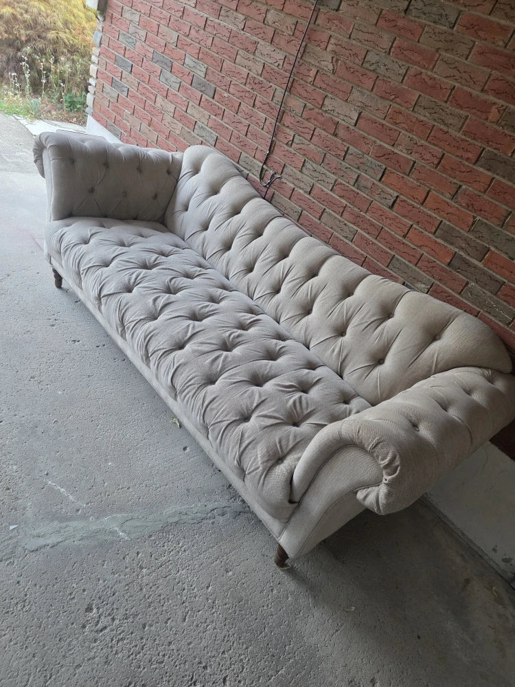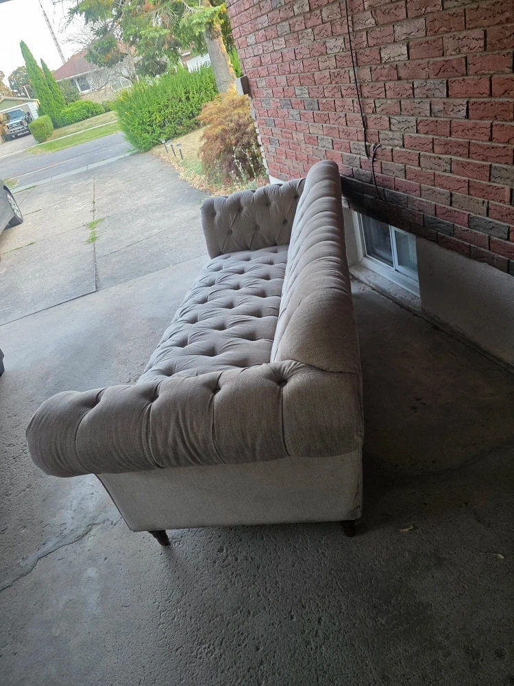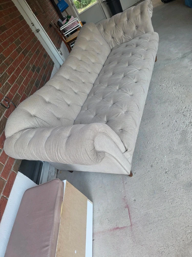Selling a tufted chaise lounge. It's in great condition and would look great in any living room or bedroom. It features a button-tufted design and a neutral colour that will complement any decor. Perfect for lounging and relaxing!